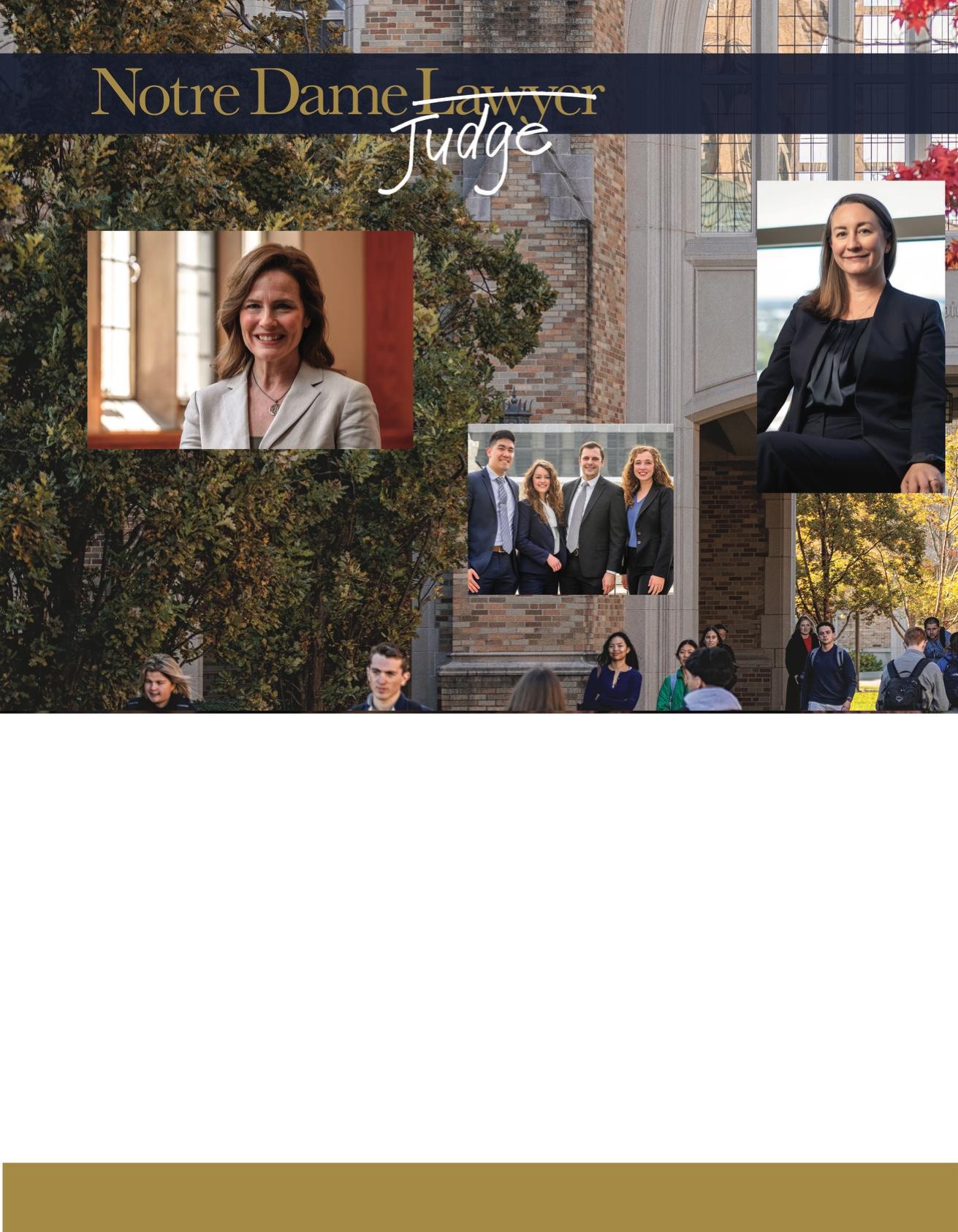 The three judges who grace the cover of this issue illustrate the importance of Notre Dame Law School as a starting point for some of the most influential judges in the world. Everyone is aware of our most illustrious alumna, United States Supreme Court Justice Amy Coney Barrett. But Notre Dame has graduated many lawyers who have gone on to serve our nation and the world in the judiciary.