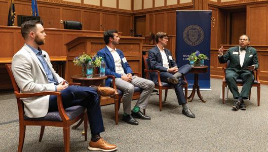 This success is thanks in part to the Law School’s Career Development Office, which now includes a full-time staff member dedicated to supporting students and alumni in their pursuit of clerkships, as well as the facultyled clerkship committee, chaired by Professor Nicole Stelle Garnett. Our faculty members—many of whom have clerked in the U.S. Supreme Court or other federal courts— offer personalized guidance, mock interviews, and concentrated classes to prepare students for their clerkship.