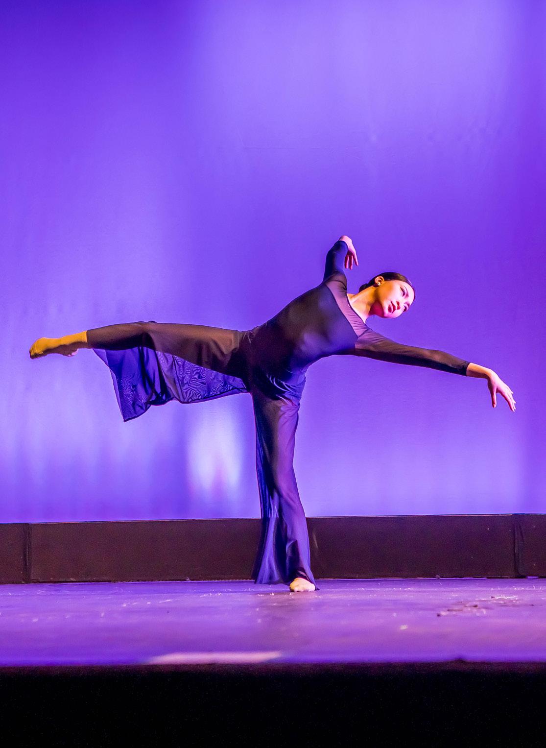 Our dance students have opportunities to participate in major performances on and off campus. The program supports skill development in various dance styles, fostering technical, creative, and collaborative growth. Leadership opportunities are available through the National Honor Society for Dance Arts, as well as event planning and campus roles such as assistant choreographers, dance captains, and student choreographers.