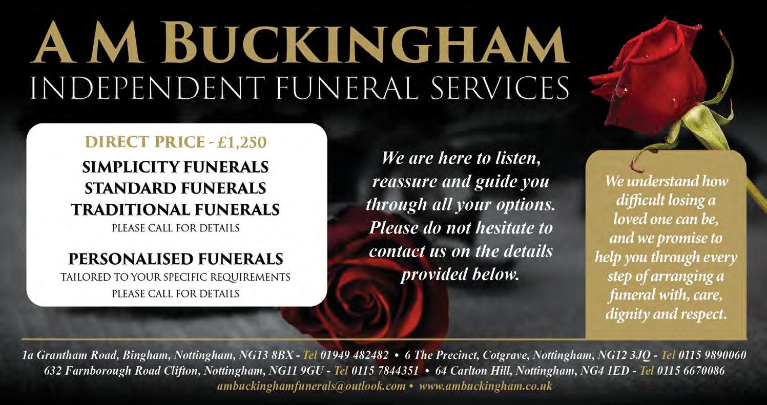 A.M. Buckingham Independent Family Funeral Services began in Cotgrave in 2008 when owner Tony Buckingham established Cotgrave & District Funeral Services.