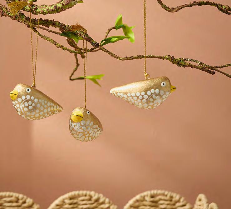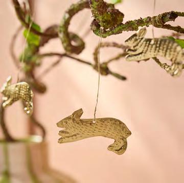Create joyful spring tablescapes and understated Easter displays with this collection from Cox & Cox. Style delicate spring branches with an expanded range of hanging eggs, from wooden and marbled designs to glass, painted finishes and intricate metal cut-outs. Add an extra touch of charm with sweet hanging metal rabbits and wooden birds.
