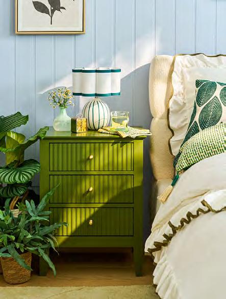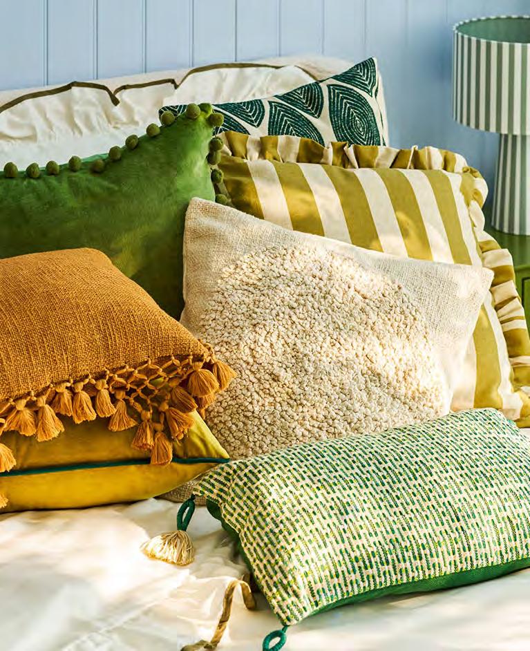 and soft furnishings. Mixing fresh greens with natural wood and leaf-patterned textile adds warmth and depth, offering an easy way to introduce the feeling of spring into the home.”
