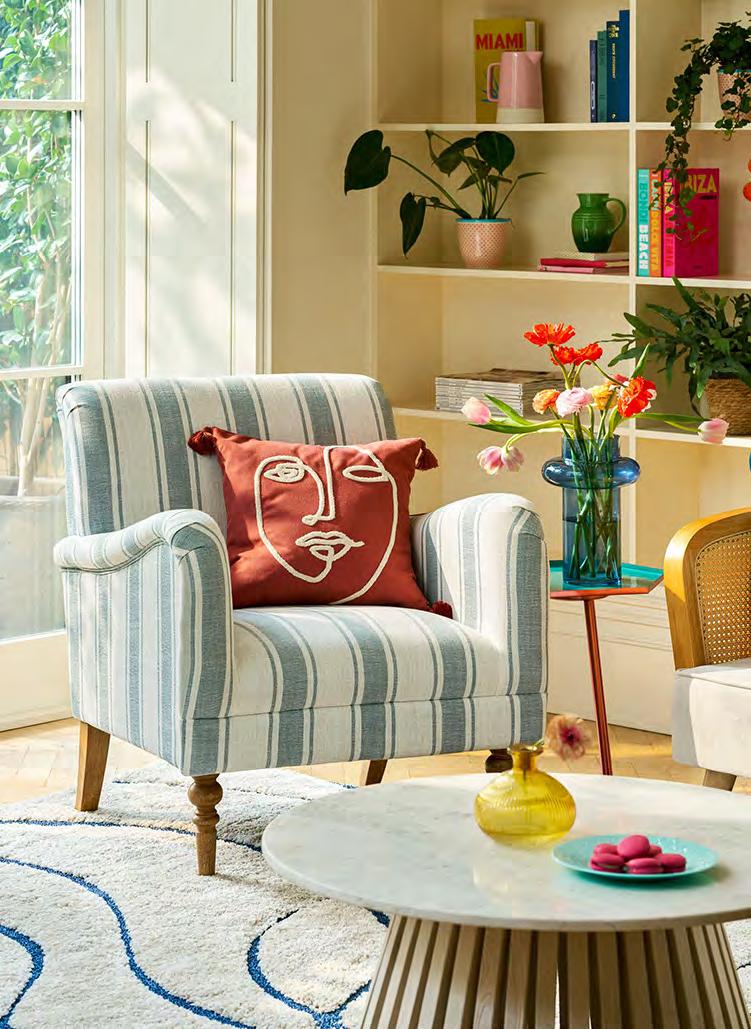 modern spring mix of patterns and textures. Ruffles, stripes and rattan all help to add character, creating a space that feels fresh and inspiring.”