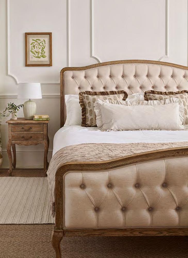 From softly gathered textiles and refined florals to sculptural furniture and antique-inspired finishes, it’s a look that favours romance over restraint, offering a touch of