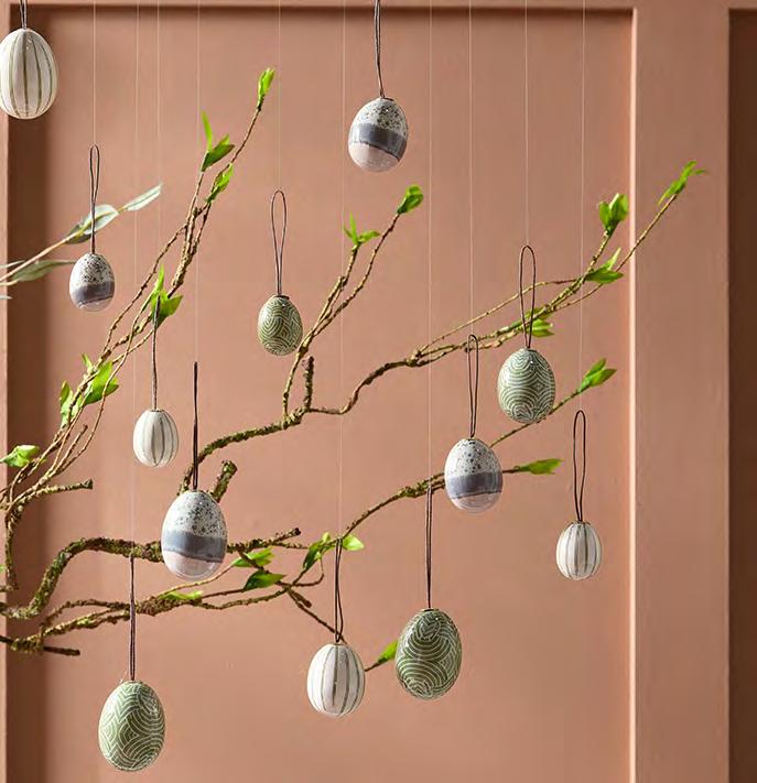 Easter Styling. Style delicate spring branches with an expanded range of hanging eggs, from wooden and marbled designs to glass, painted finishes and intricate metal cut-outs, with this collection from Cox & Cox.