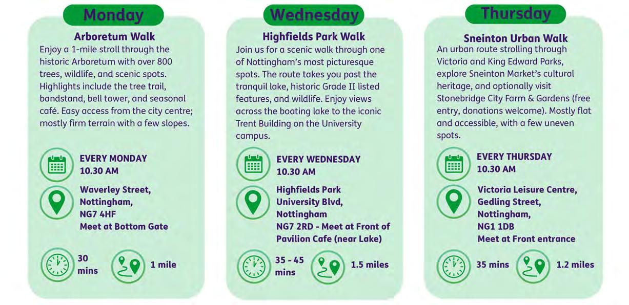 • Cafés and pubs nearby in the marketplace/Sneinton avenues for refreshments and social time after the walk (paid for by walker)