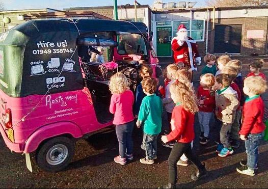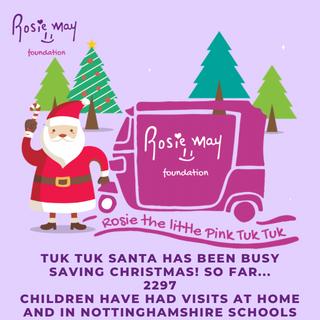 In December, Tuk Tuk Santa was busy saving Christmas for local children. Grottos were closed, so Tuk Tuk Santa and his elf delivered socially distanced visits to doorsteps and school playgrounds across Nottinghamshire and Leicestershire. Tuk Tuk Santa told the children that he was driving Rosie the Little Pink Tuk Tuk because his elves were 'elf isolating' and showed them Rudoph's bell as evidence!