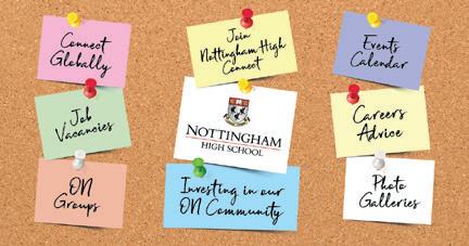 Thank you to those who have joined Nottingham High Connect. We now have over 760 members! Nottingham High Connect will give you access to a willing network providing professional opportunities such as mentoring, jobs, internships and introductions; and social opportunities such as events, groups and discussions. See page 32 for further details.
