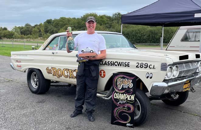 The Rocket is powered by a 7-litre V8 engine and covers the standing quarter mile in 10.80 seconds at 123 mph. The fun thing about the car is that I also drive it on the street so it draws quite a lot of attention when I do my supermarket shopping in it. Another great thing is the merchandise I sell to support the racing, a clothing range and stickers, have been produced by ON friends from my years at the school.