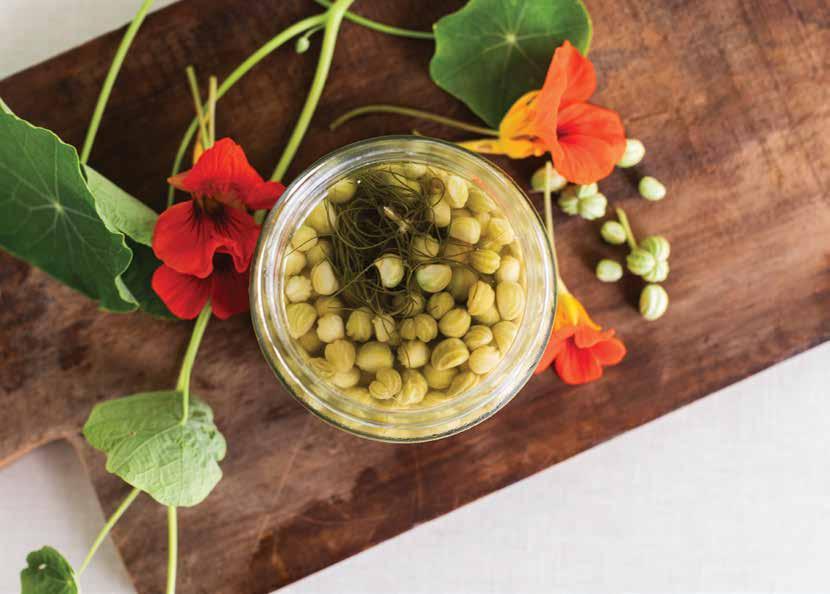 On capers, I had to include my hairdresser Paul’s capers trying to grow capers, simultaneously trialling an alternative with the nasturtiums that were taking over my garden (page 18).