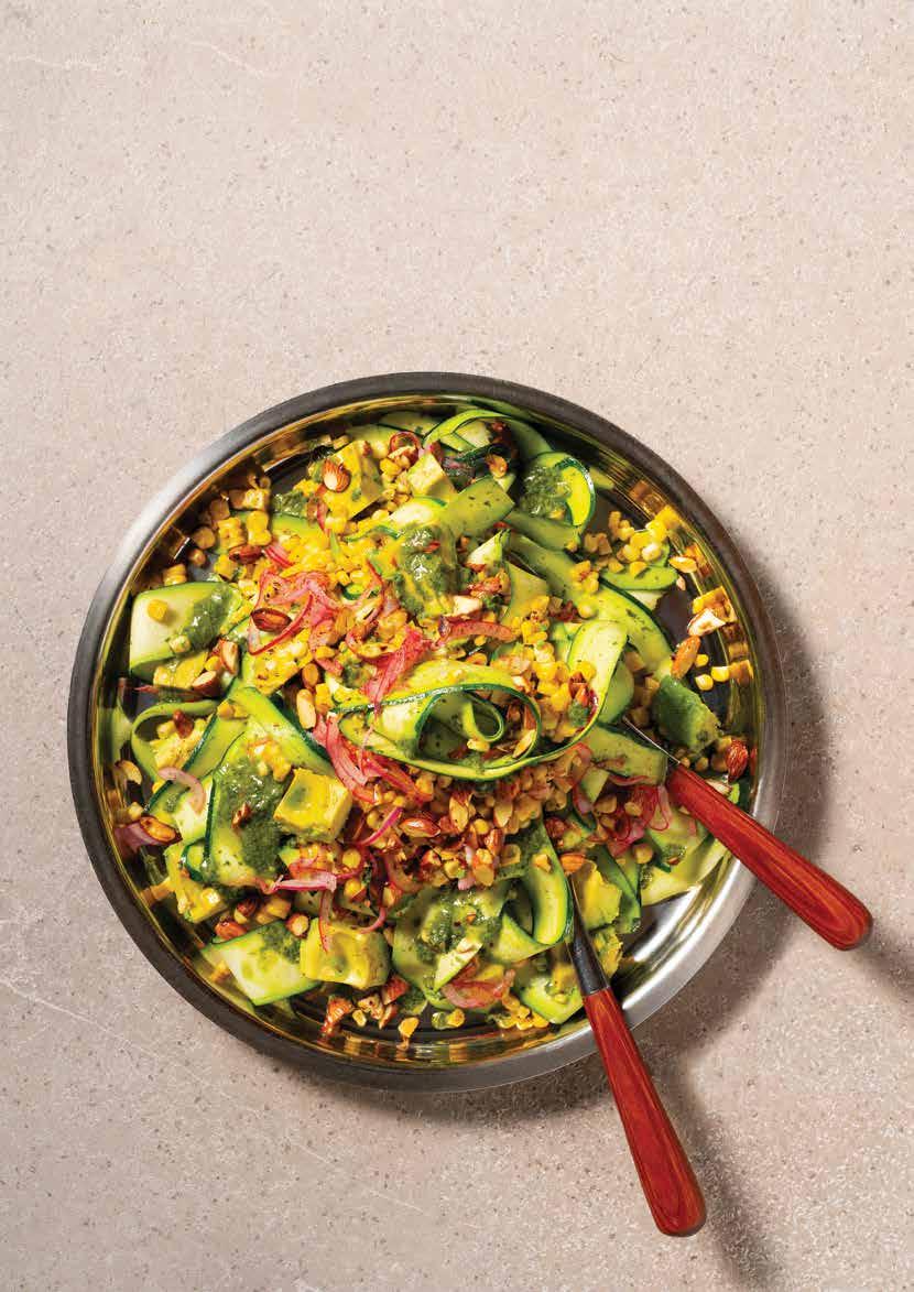 COURGETTE, CORN, CORIANDER & AVOCADO SERVES 6