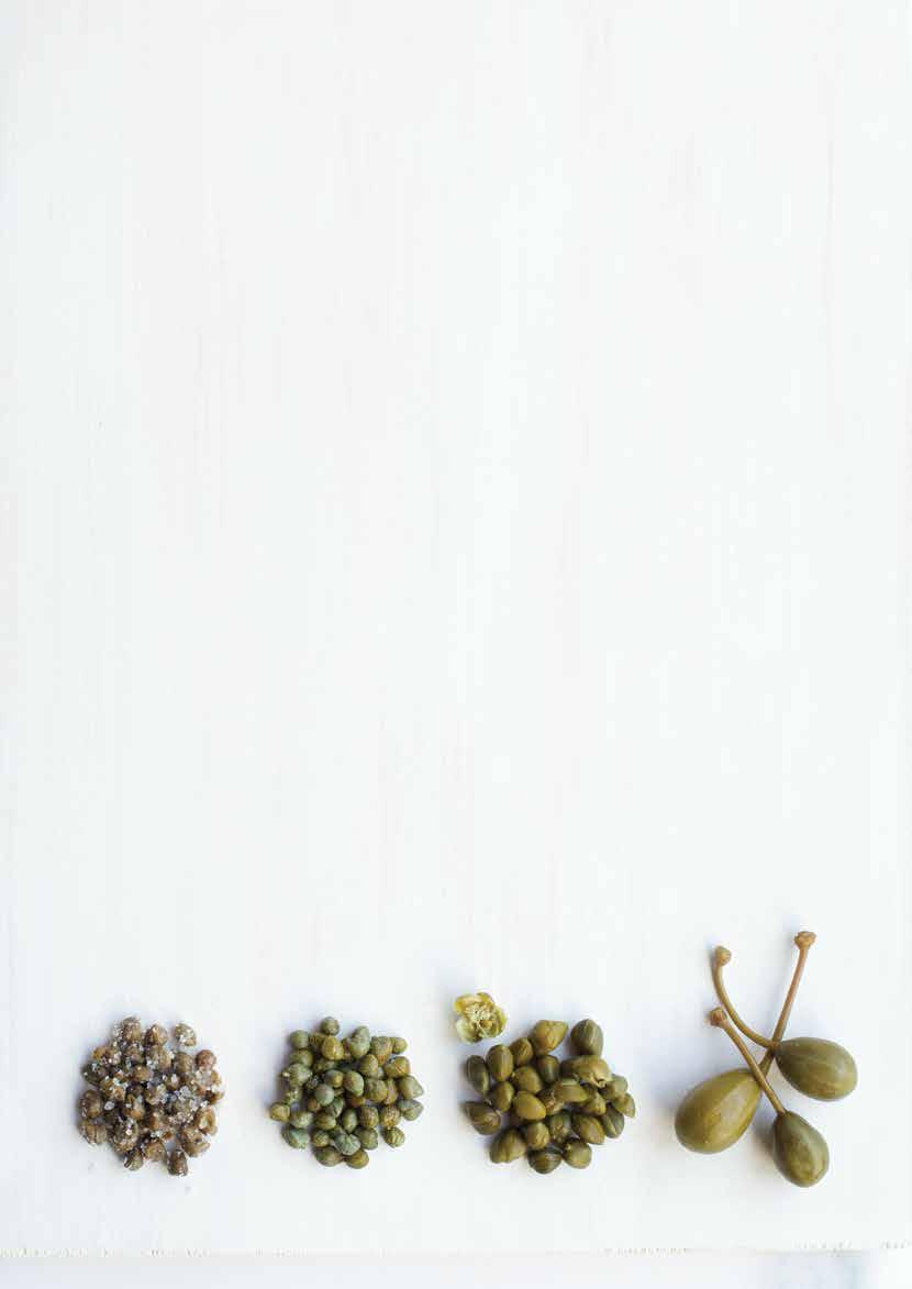 Julie Le Clerc took capers and then took the words right out of my mouth. Her eloquent introduction on capers (page 20) was exactly what I would have written, down to the first time I looked in awe at a caper plant growing in abundance in the Mediterranean.