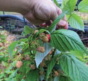 MUSPlantPatent#24,811 MiD-sEasON ArecentreleasebyDr. CourtneyWeberofCornellUniversity, berrieshaveadeepblush,goldenchampagnecolor,mediumsize,and conicalshape.Excellent,verysweet flavor!Growsvigorously,suckersfreely, andshowstolerancetodisease.Canbe managedforaprimocane,orfloricane crop. Zones5–7