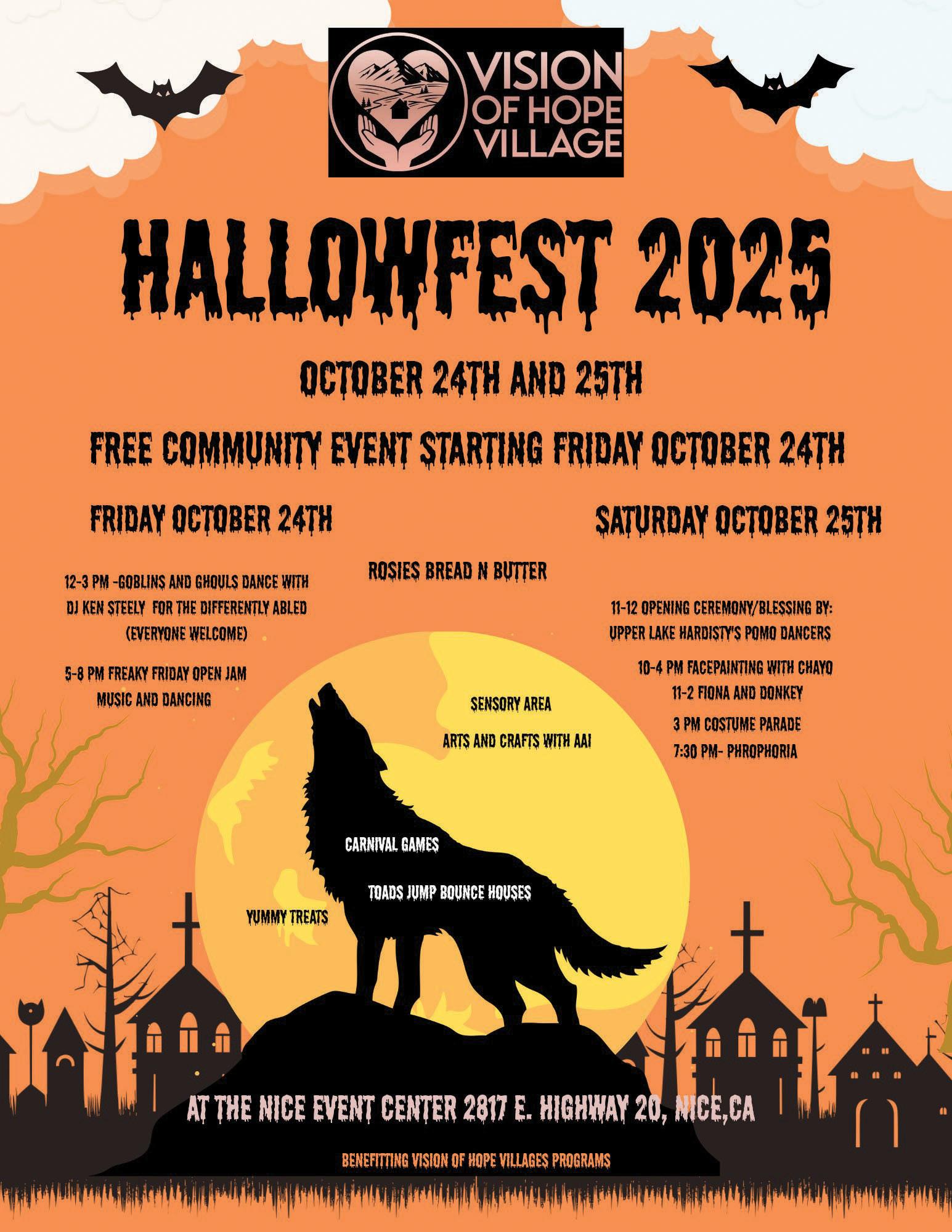 Halloween Concert Fall Festival. Free pumpkin and treat for kids in costume. Costume contests for all ages (and pets!). Enjoy corn maze, tractor rides, carousel, plus food, wine, and more. Fees apply. 5–8:30 p.m. That Ranch. 4405 Thomas Dr., Lakeport. discoverlakeportca.com/ event/2412.