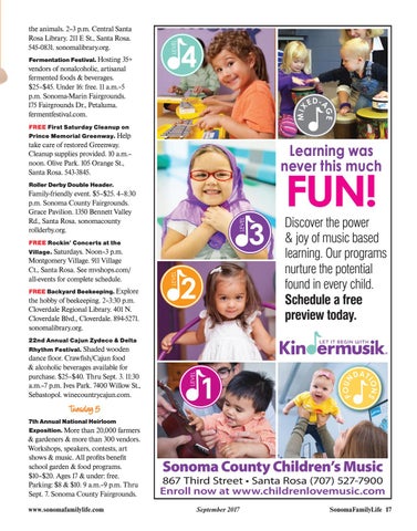 867 Third Street • Santa Rosa (707) 527-7900 Enroll now at www.childrenlovemusic.com September 2017
