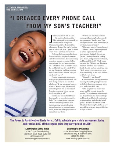 In the Adobe Creek Shopping Center at Lakeville Hwy. & McDowell Blvd. Other Area Locations: (707) 781-7373 www.learningrxpetaluma.com FPA-Attention Power-405