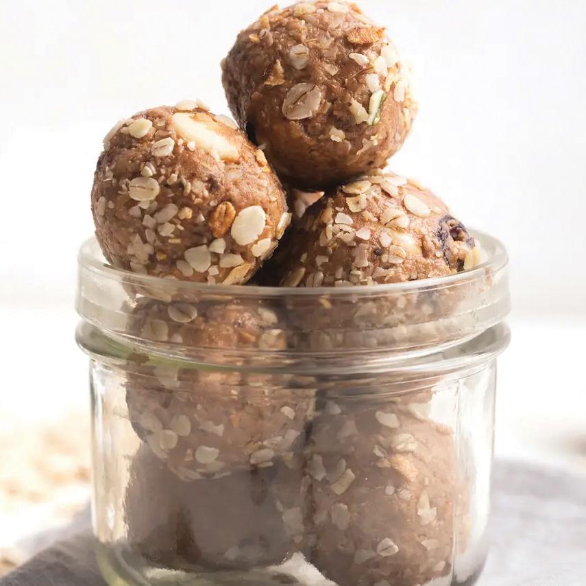 2. Roll into 12-14 balls. Typically 1 1/4- or 1 1/2-inch diameter makes a nice treat size, but even smaller is perfect for bite-sized snacks. The mix should easily form into balls and hold its shape well.