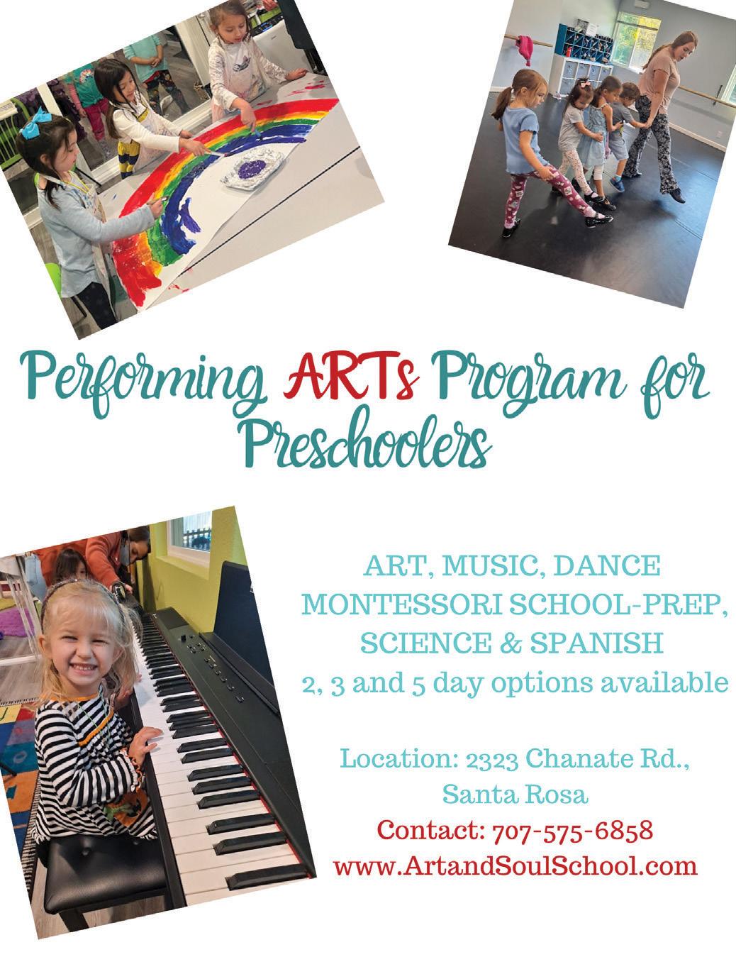 • Paid job training. • Part-time. • Health benefits. • CalPERS retirement. • Winter & Spring Breaks off. • Summers optional. • Paid sick leave, holidays, & vacations. SCHOOL BUS DRIVERS NEEDED! Now Accepting Applications START YOUR NEW CAREER! CALL NOW 707-206-9988 367 West Robles Avenue, Santa Rosa • www.schoolbusing.org The YMCA Preschool provides your child with high-quality, age-appropriate activities and enjoyable experiences. Personal attention, rich sensory experiences, and a generous supply of giggles! 707 308-3043 • www.scfymca.org 2590 Piner Rd. Santa Rosa Part-Time/Full-Time Care Flexible Plans Available Serving Infant–5 Years www.sonomafamilylife.com October 2023 SonomaFamilyLife 29