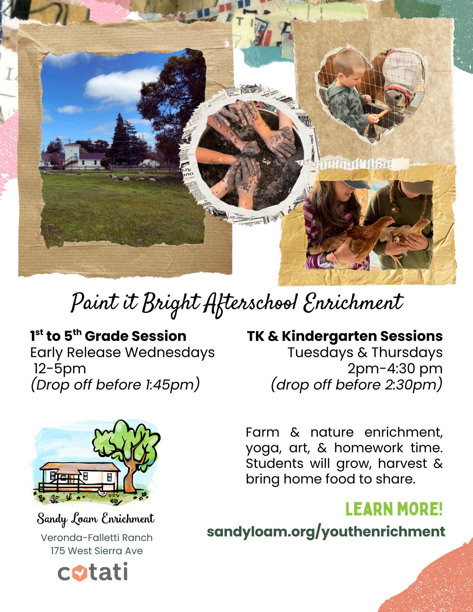 Early Release Enrichment at Veronda-Falletti Ranch. Provides farm, nature- & art-based experiences, snacks provided. TK & Kindergarten: