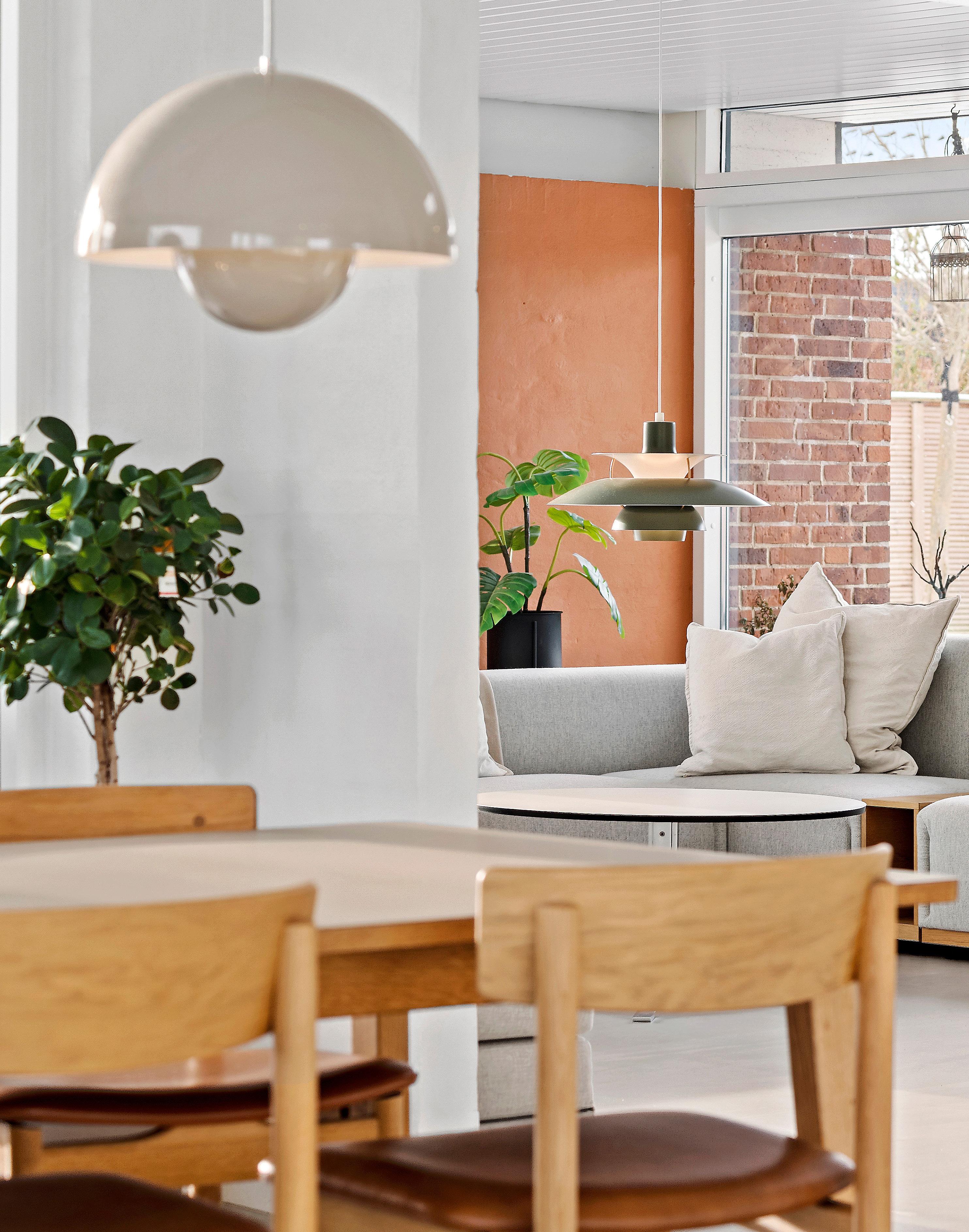 Husets leverum er et naturligt samlingspunkt og består af det store og lyse køkkenalrum, der både inkludere en spisestue, i åben forbindelse med køkkenet, såvel som den store stue, herudover endnu et rum der kan bruges både til hverdagens måltider eller som loungeområde såvel som et fjerde værelse om man ønsker det. Særligt er det svært ikke at begejstres over den skønne udsigt, og de store vinduespartier, der indrammer udsigten og med udgang til haven.