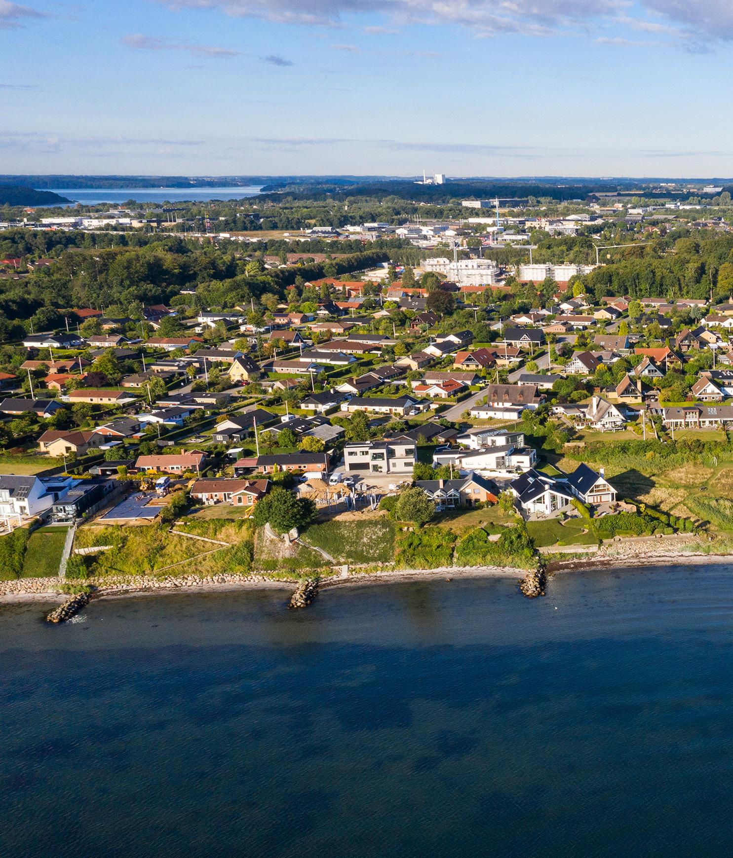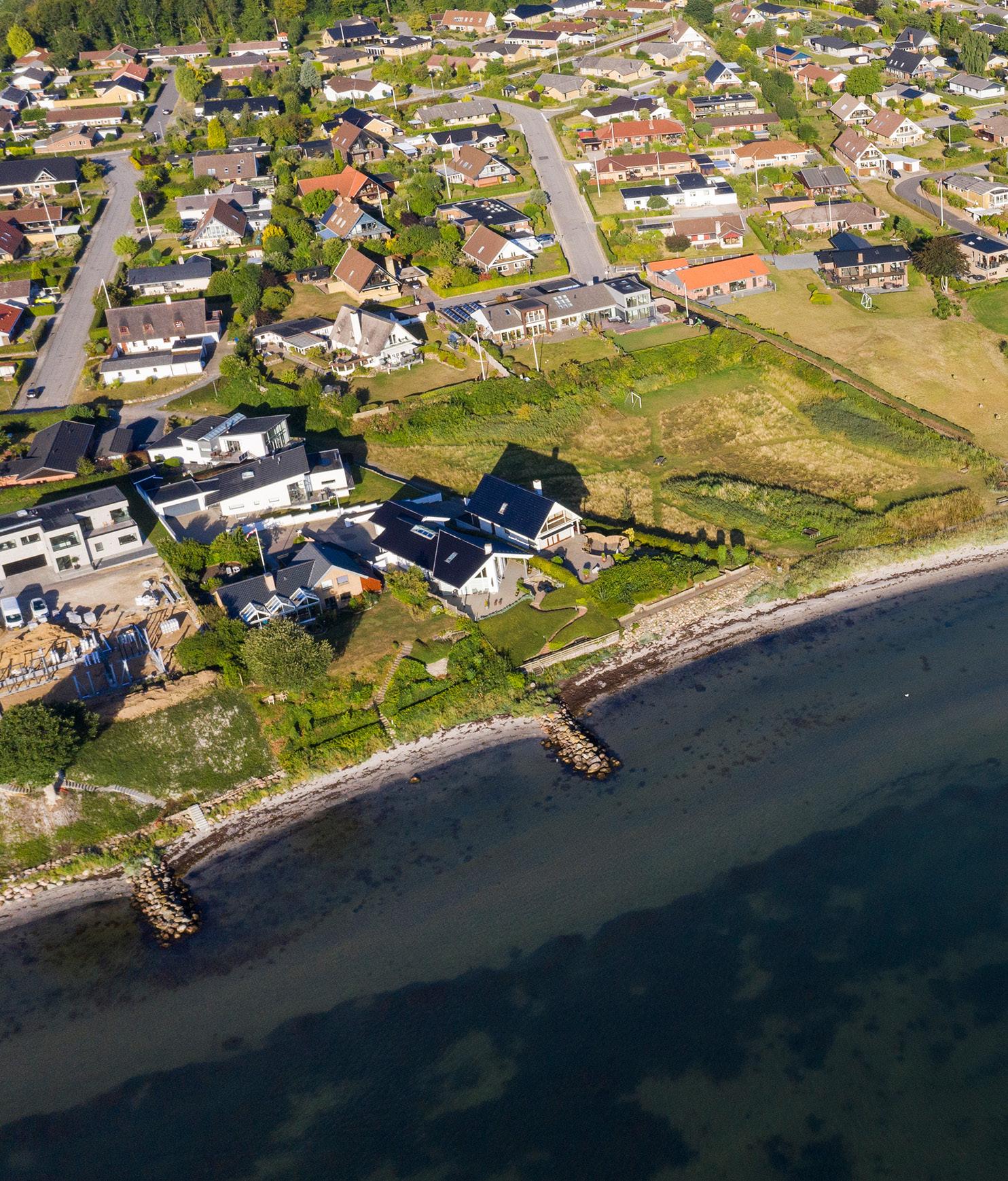 Med en skøn udsigt til vandet, bådebroen og Lillebælt ligger denne skønne funkisvilla på 204 etagemeter opført i 1972, på en lille rolig vej på strandsiden i Erritsø. Boligen er totalt renoveret i 2022 hvor villaens historie smelter sammen med moderniseret komfort. Villaen har en helt forrygende udsigt over Lillebælt, med Stribs fyrtårn og de skovklædte bakker i horisonten. Udsigt som er helt specielt, da man kan spotte Fredericia havn og alle bygningerne, der når det er mørkt, lyser byen op som et maleri i horisont. Man kan se indsejlingen som kommer direkte mod udsigten inden skibene går i havn i Fredericia. Her kan sagtens ligge 5 skibe eller mere og vente direkte i køkkenvinduet.