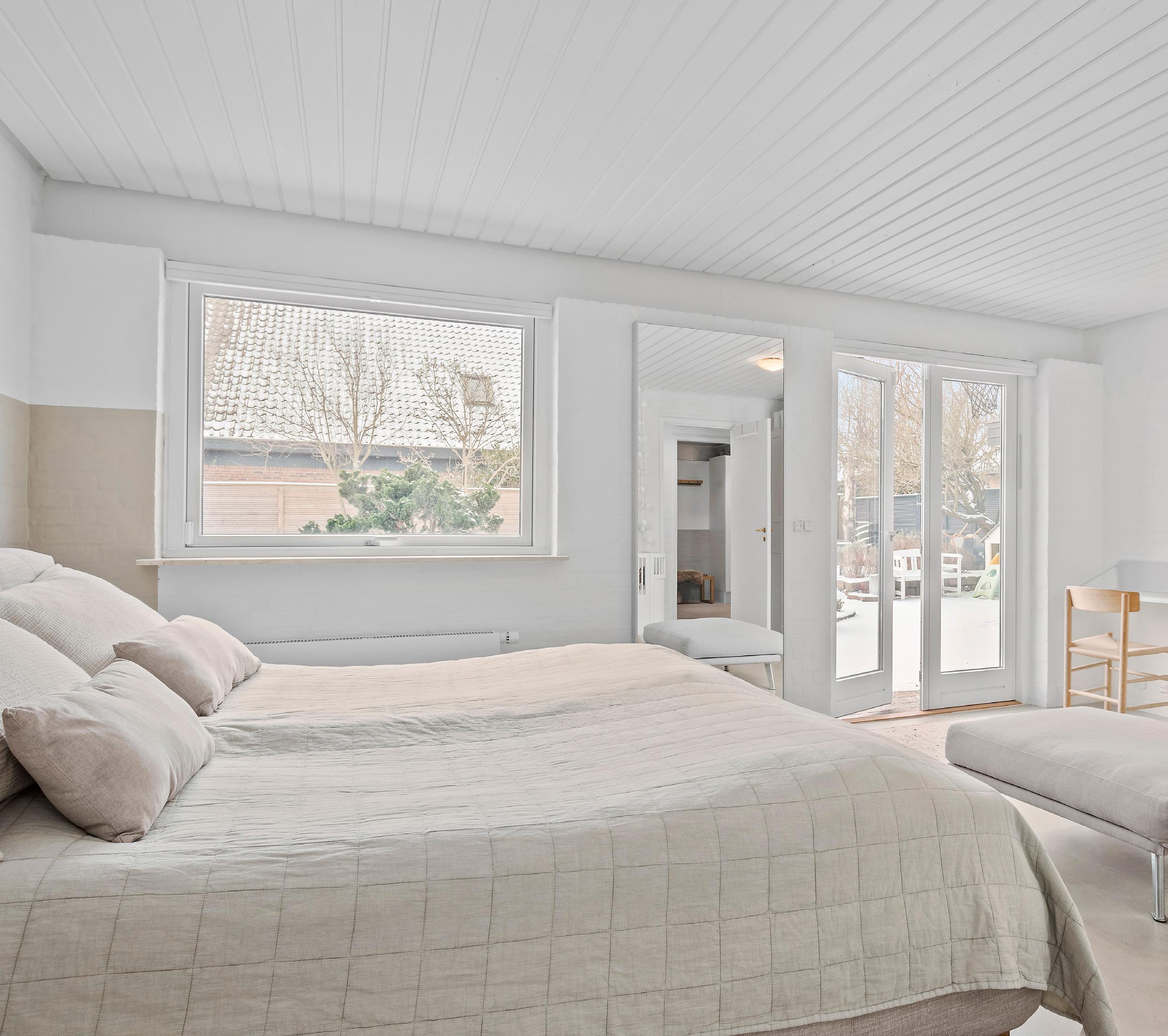 Forældresoveværelset i denne villa, er et dejligt stort soveværelse, med skabsvæg og udgang til den store have, så man kan nyde sin kaffe i morgensolen eller lufte dynen.