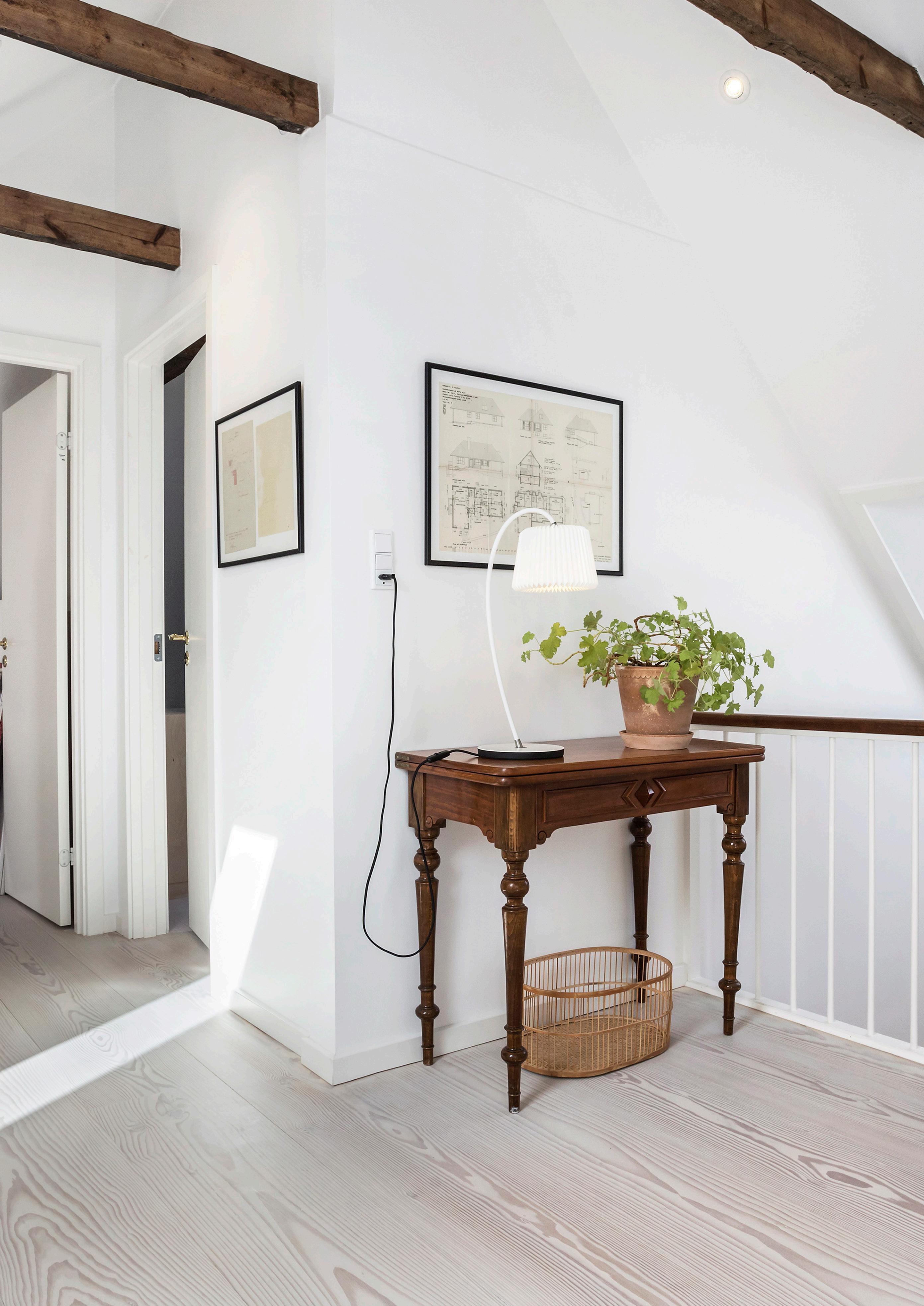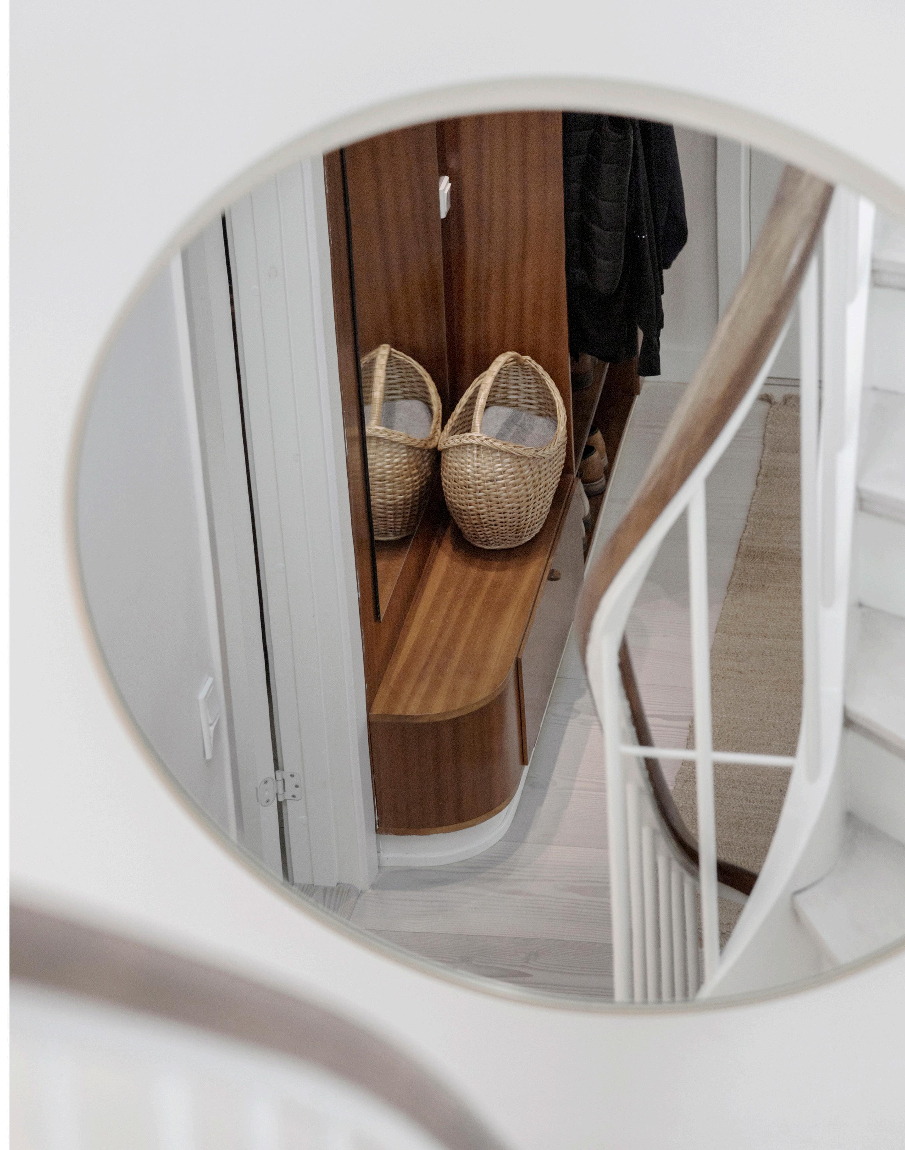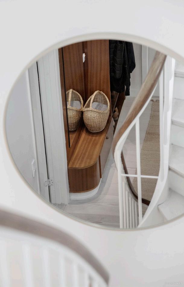 Velkommen indenfor i denne villas store hall, der giver et imponerende indtryk af boligens minimalistiske stil kombineret med de charmerende detaljer. I hall´en er der specialfremstillet sidde og opbevarings element fra 1954 i perfekt stand.