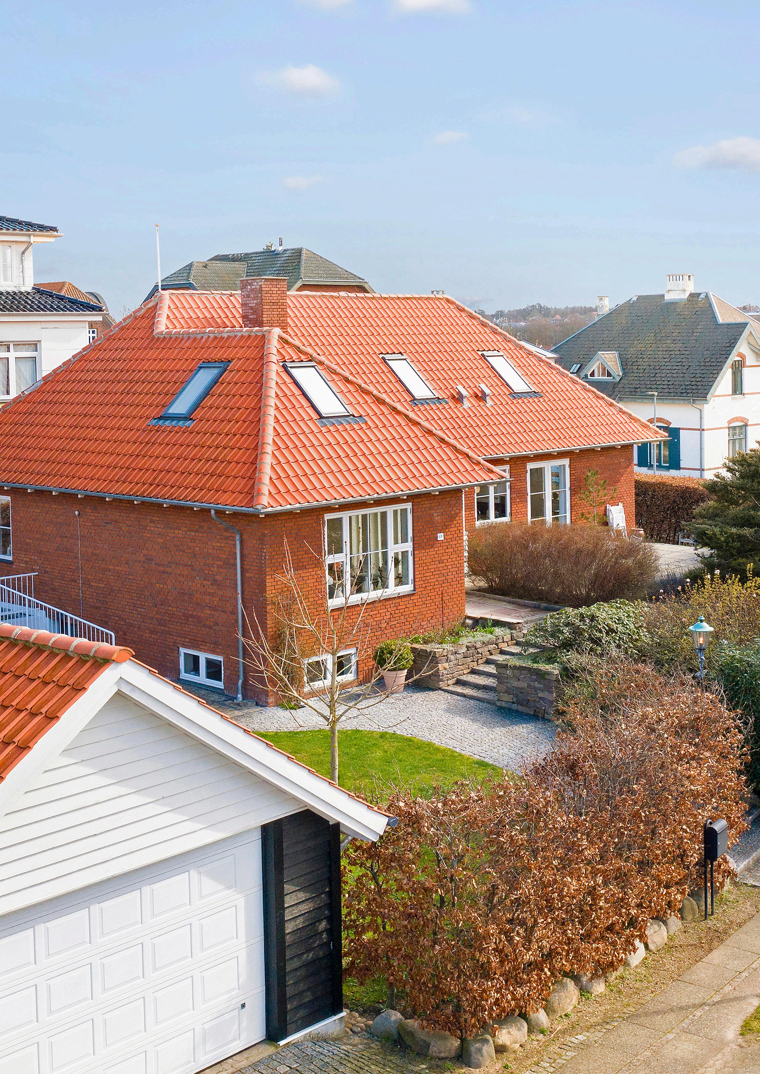 Hele boligen er moderniseret i 2014 og 2017. Alt er valgt fra øverste hylde med sans for at holde den røde tråd og husets æstetik. Taget er ligesom vinduerne udskiftet i forbindelse med renoveringen. Beliggenhedens kvaliteter rækker imidlertid langt længere end til det rent visuelle, for også hvad angår det praktiske, er man bekvemt placeret. Her er man i kort gåafstand til skov og naturområder, og den fredelige atmosfære til trods er der blot fem minutters gang til byens kulturelle og kulinariske miljø i og omkring gågaden. Her er et bredt udvalg af specialbutikker, caféer og spisesteder. Ligeledes har man skole, pasningstilbud og fødevareforretninger i lokalområdet - inden for en radius af omtrent en kilometer eller mindre. Selvom centrum blot er et stenkast væk, betyder den eksklusive beliggenhed, at der stort set ingen trafikstøj er.