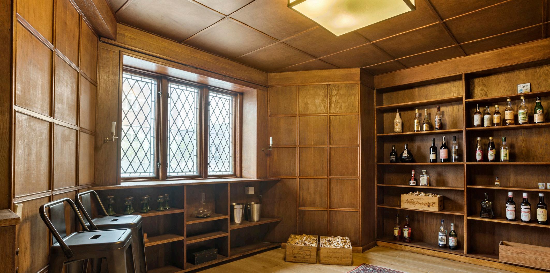 Særligt kan man bemærke nederste etages feinschmecker rum. Her er installeret et meget stort vinrum, komplet med original belysning og flotte trædetaljer fra ca 1950erne.