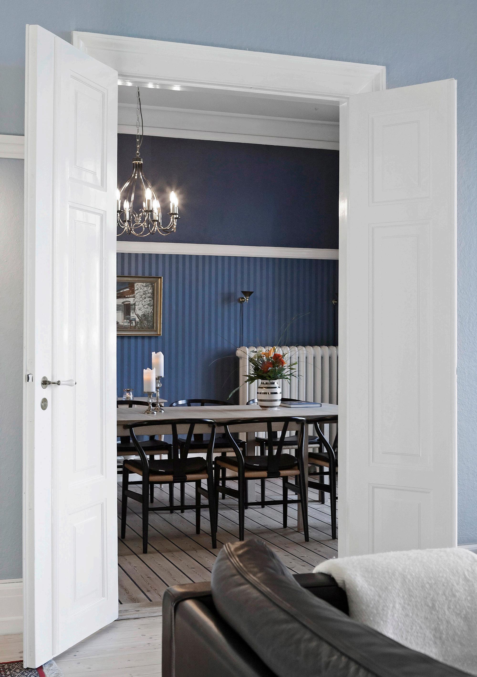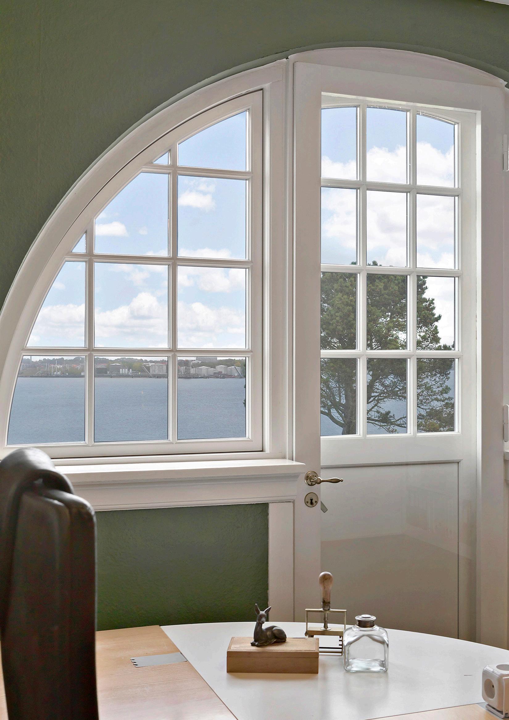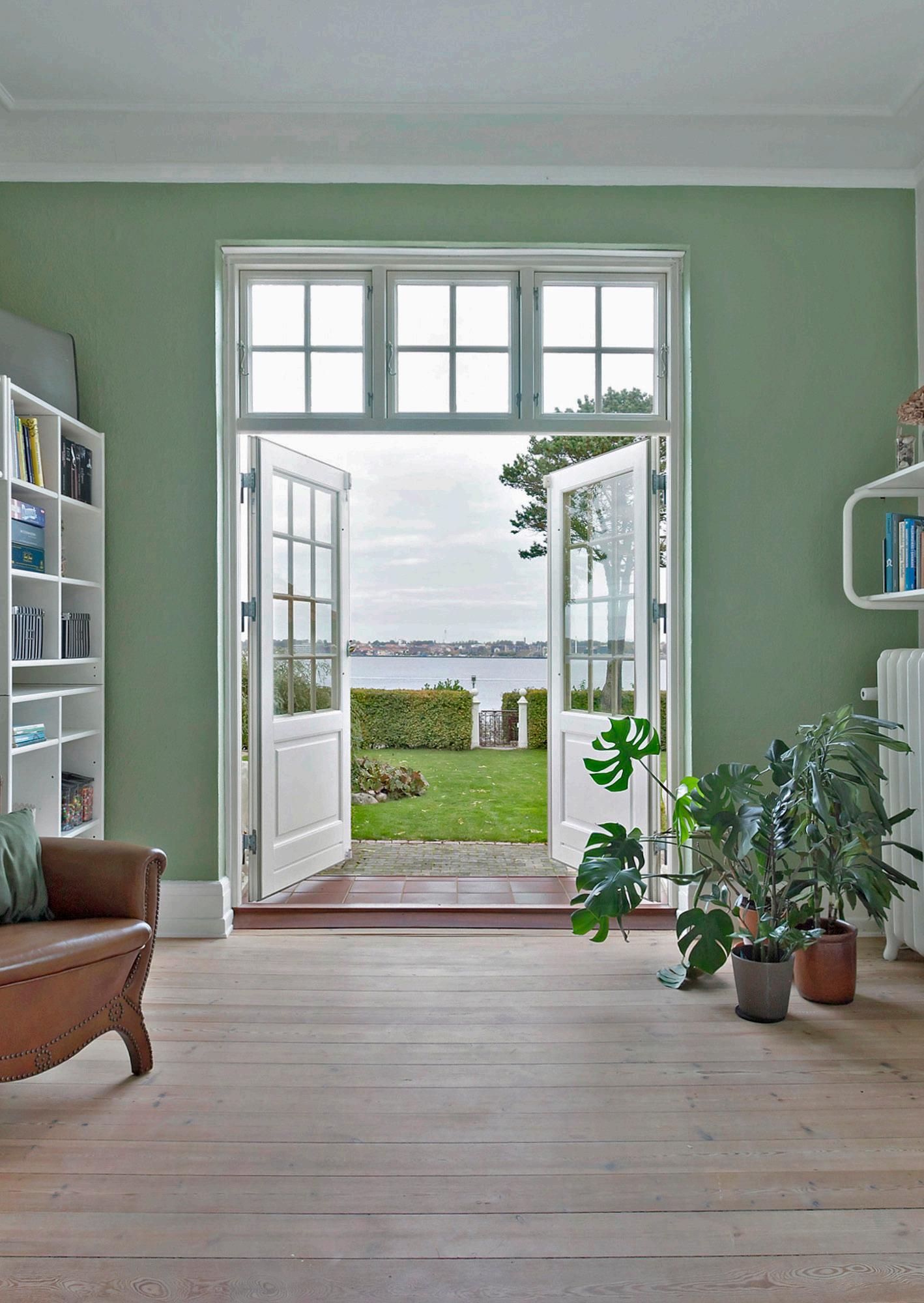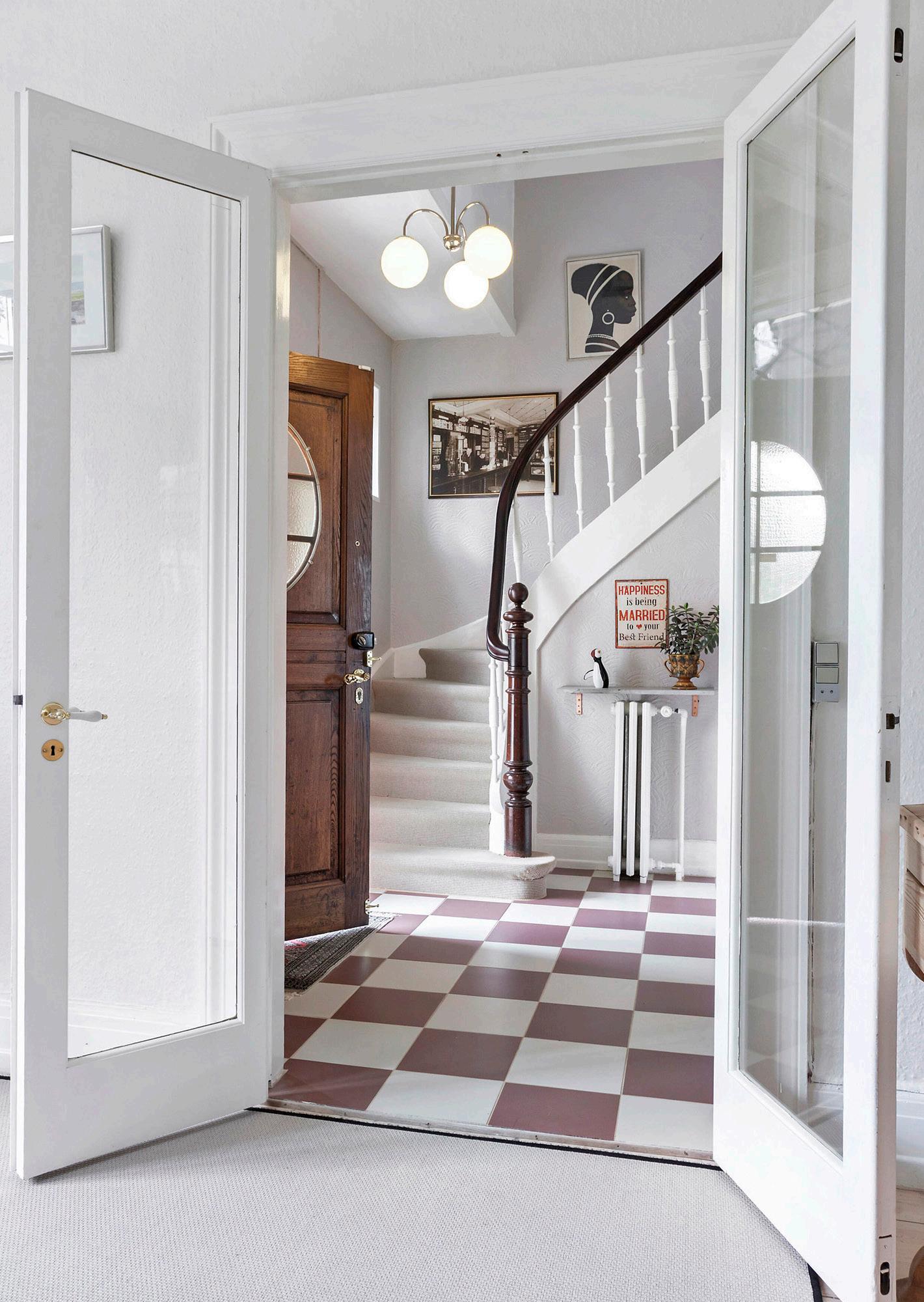 Med karakteristiske plankegulve, småsprossede vinduespartier og en loftshøjde på mere end tre meter er der en uforlignelig atmosfære. Skønne dobbeltdøre forbinder de fleste rum i stueplan, hvilket giver et lyst og rummeligt indtryk.