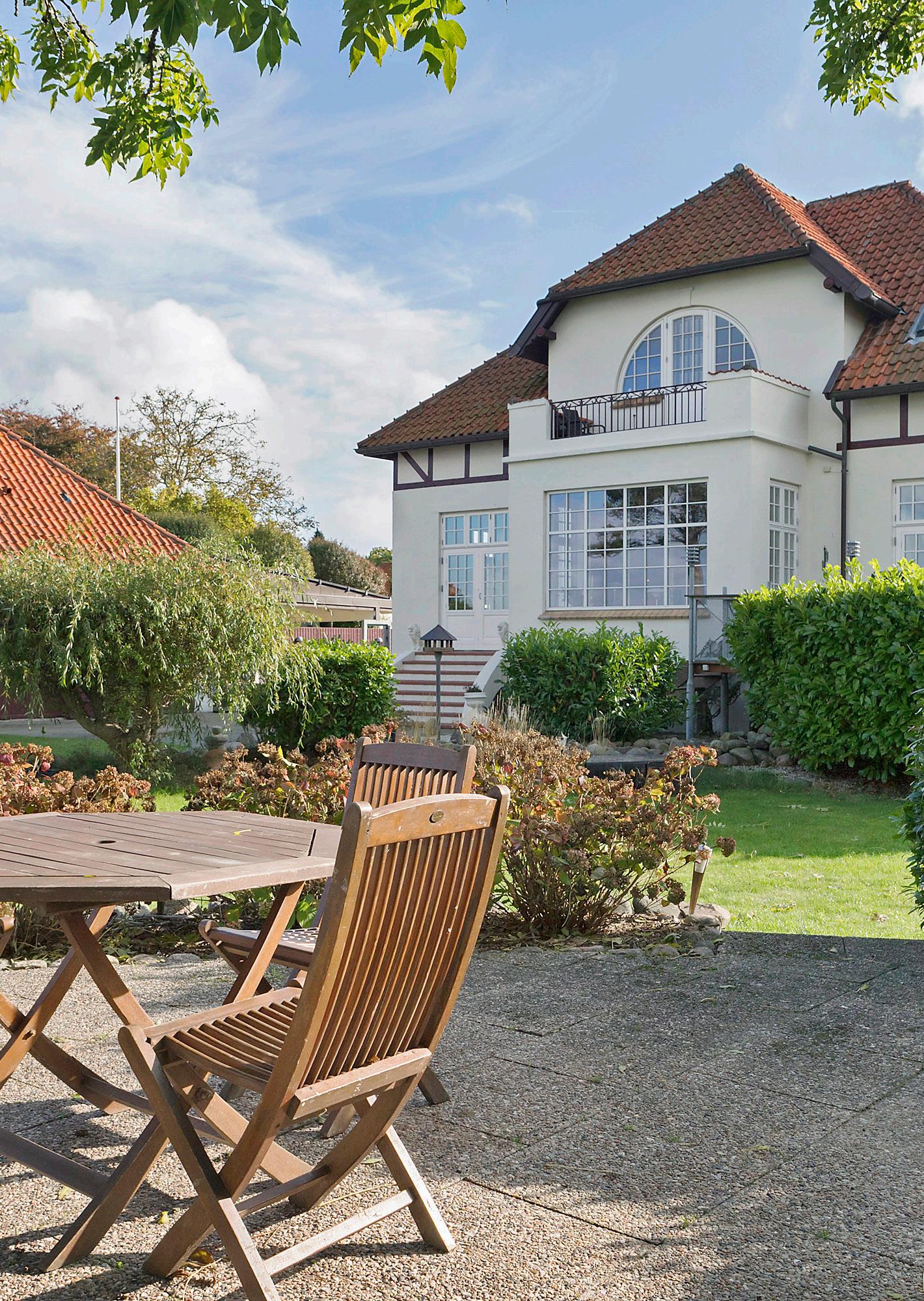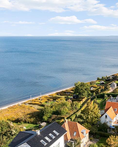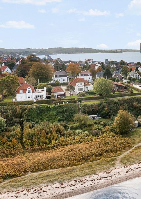 Ejendommen fordeler sig over to matrikler, som består af selve villagrunden på 1.513 m2 med den smukke fuldmurede hvidpudsede villa fra 1917. I forlængelse heraf, ned ad en skøn trappe, finder man en stor strandgrund på 732 m2 med en træterrasse og indlagt elektricitet. Dermed får I størst mulig glæde af den fænomenale beliggenhed. Den rummelige herskabsvilla byder på 385 anvendelige etagemeter, og selv rummene på nederste etage er højloftede og lyse, så også familiens kogekone og tjenestepige oprindeligt nød fine forhold. Derfor lå køkkenet også tidligere hernede, mens der i dag er genveks og gedigne rum i vente.