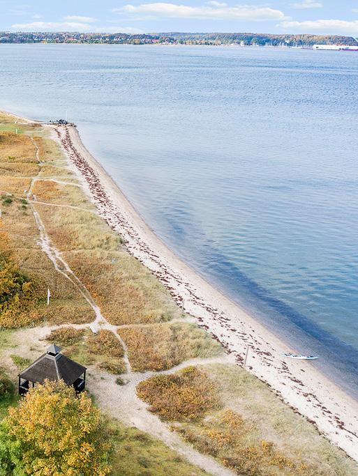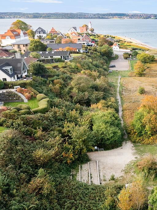 Ønsker man at drage på sommerferie i egen have kan man nyde den på strandgrunden, enten fra terrassen på toppen eller nede ved vandkanten på den private strandgrund hvor du kan træde direkte ud på den fine sandstrand. Strandgrunden fungerer perfekt til at nyde sommerdagene ved stranden med dejlig vandsport, dyk i Lillebælts klare vand, og fødder i det bløde sand. Ligeledes kan man nyde solnedgangen over Lillebælt mens man stadig sidder med fødderne i sandet, eller mens man underholder gæsterne på terrassen.
