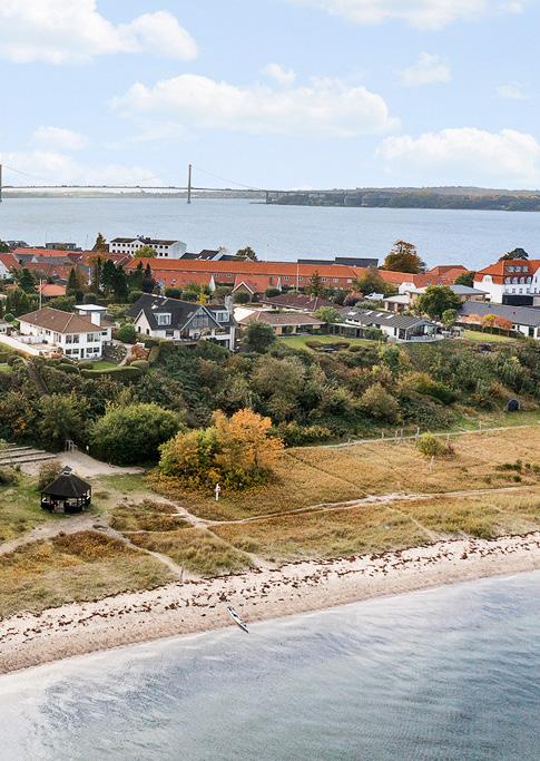 Ejendommen nyder desuden en prominent placering på én af Stribs bedste adresser, hvor den er blandt de få, der har egen strandgrund. På dette sted har man her helårsbolig og sommerferie fornemmelsen samlet i én og samme ejendom, i første række med 180 graders vidunderlig havudsigt, hvorfra det er muligt at nyde både solopgang og solnedgang.