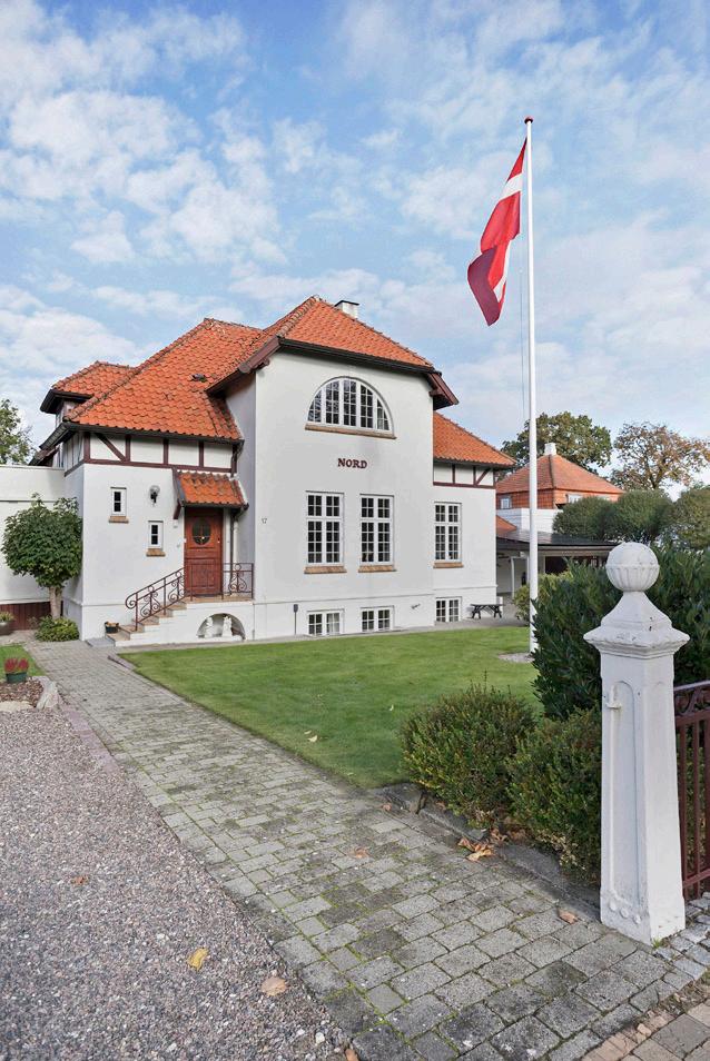 Villa Nord blev opført i 1917 af den lokale direktør Nielsen efter herskabelige forskrifter. Også i dag fremstår den imponerende ejendom med en afbalanceret symmetri, og det indbydende helhedsindtryk fuldendes af Lillebælt, som udgør det bedst tænkelige bagtæppe. Direktør Nielsen der opførte villaen oprindeligt, var blandt de første i landet til at eje en Ford A, og til så kostbar en investering var det naturligvis på sin plads med en garage. Denne bygning er i dag konverteret til blandt andet at rumme et lyst værksted, med udsigt til vandet gennem de originale vinduespartier, der også gør rummet velegnet som atelier. I får dertil en dobbelt carport, og på taget har man diskret valgt at placere solpaneler, som dermed ikke spolerer husets flotte udtryk.