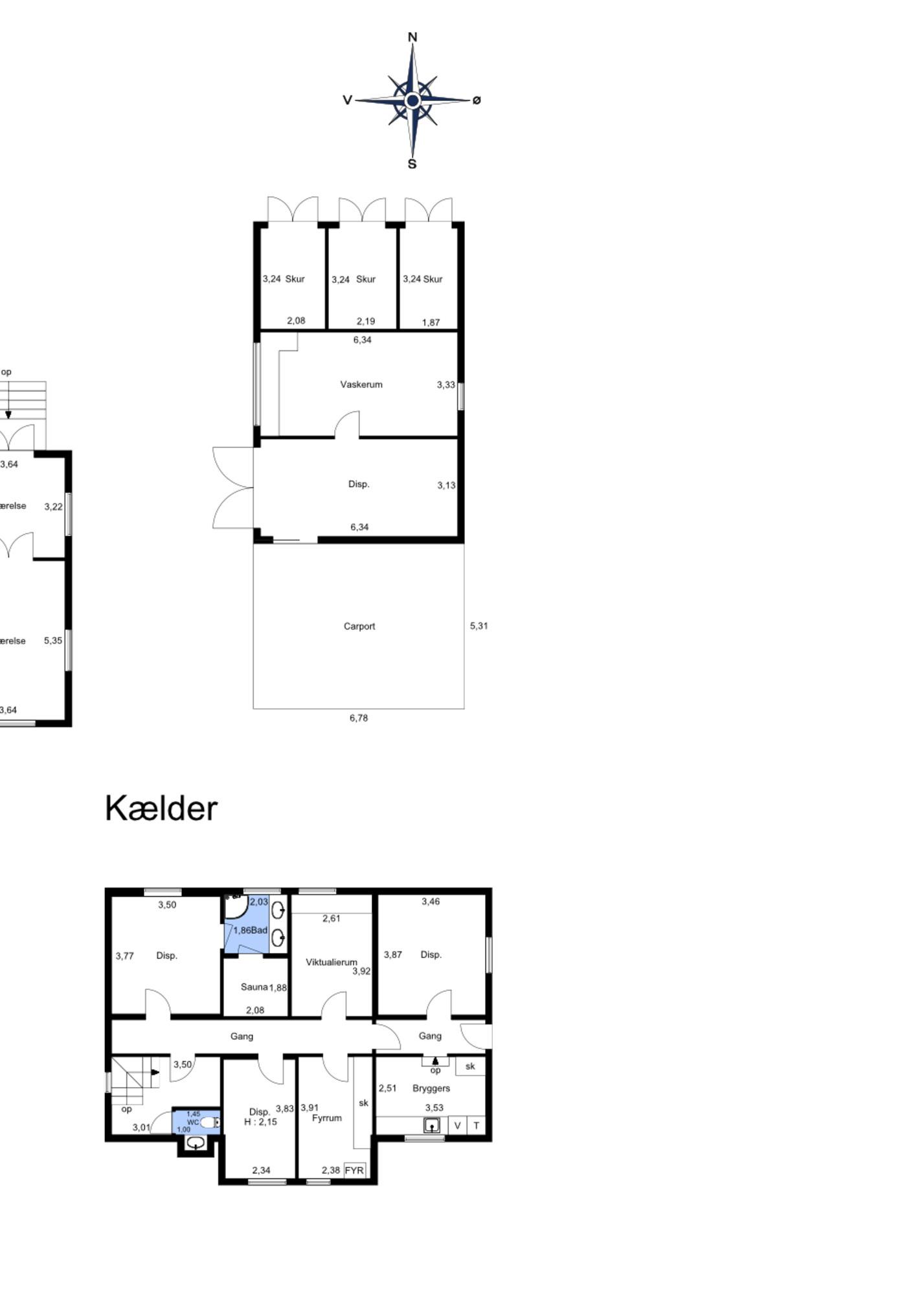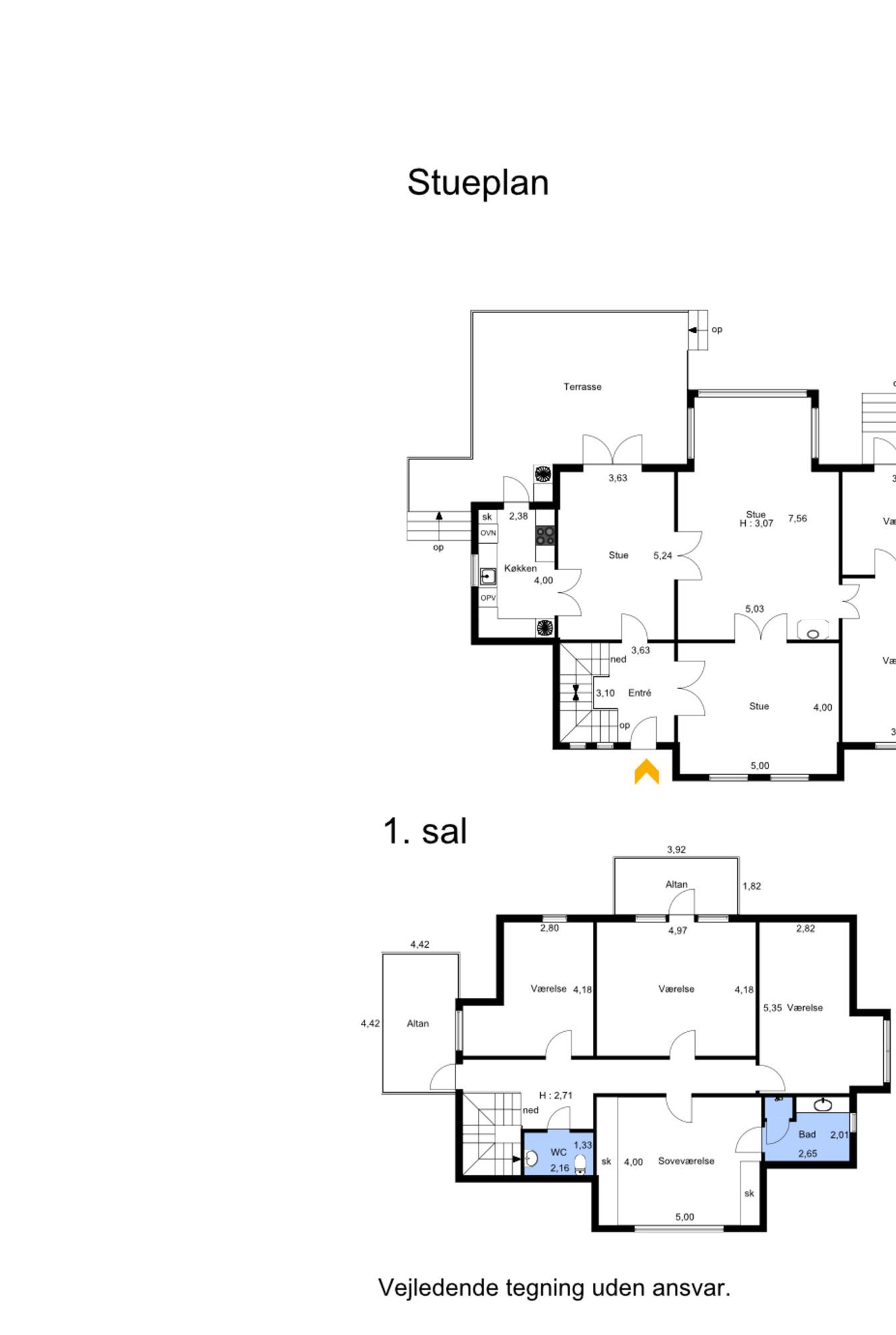 I nederste etage finder man garderobe, vaskerum, viktualierum og en vaskeægte bar, to lyse gæsteværelser samt endnu et badeværelse med sauna - her er altså rigelig af plads til både gæster og den store familie.