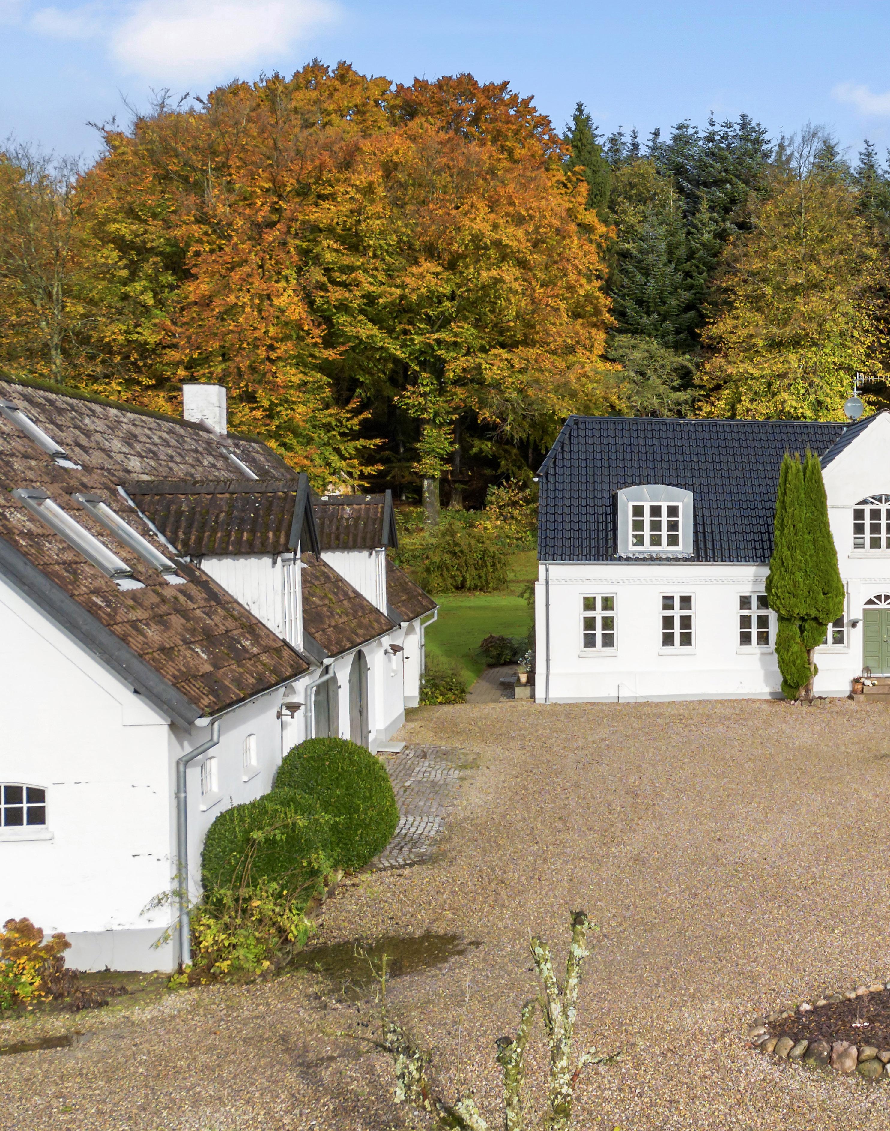 Der findes steder, hvor tiden synes at bevæge sig langsommere – hvor naturens rytme får lov til at bestemme tempoet, og hvor alt omkring én taler et roligt, lavmælt sprog. Denne ejendom er et sådant sted. Omgivet af bøgeskovens dybe grønne toner, der skifter karakter i løbet af året, og engens bløde farvespil, ligger villaen som et vidnesbyrd om klassisk dansk byggeskik. Et hjem, der siden sin opførelse i 1868 har forandret sig med tiden, men aldrig mistet sin sjæl.