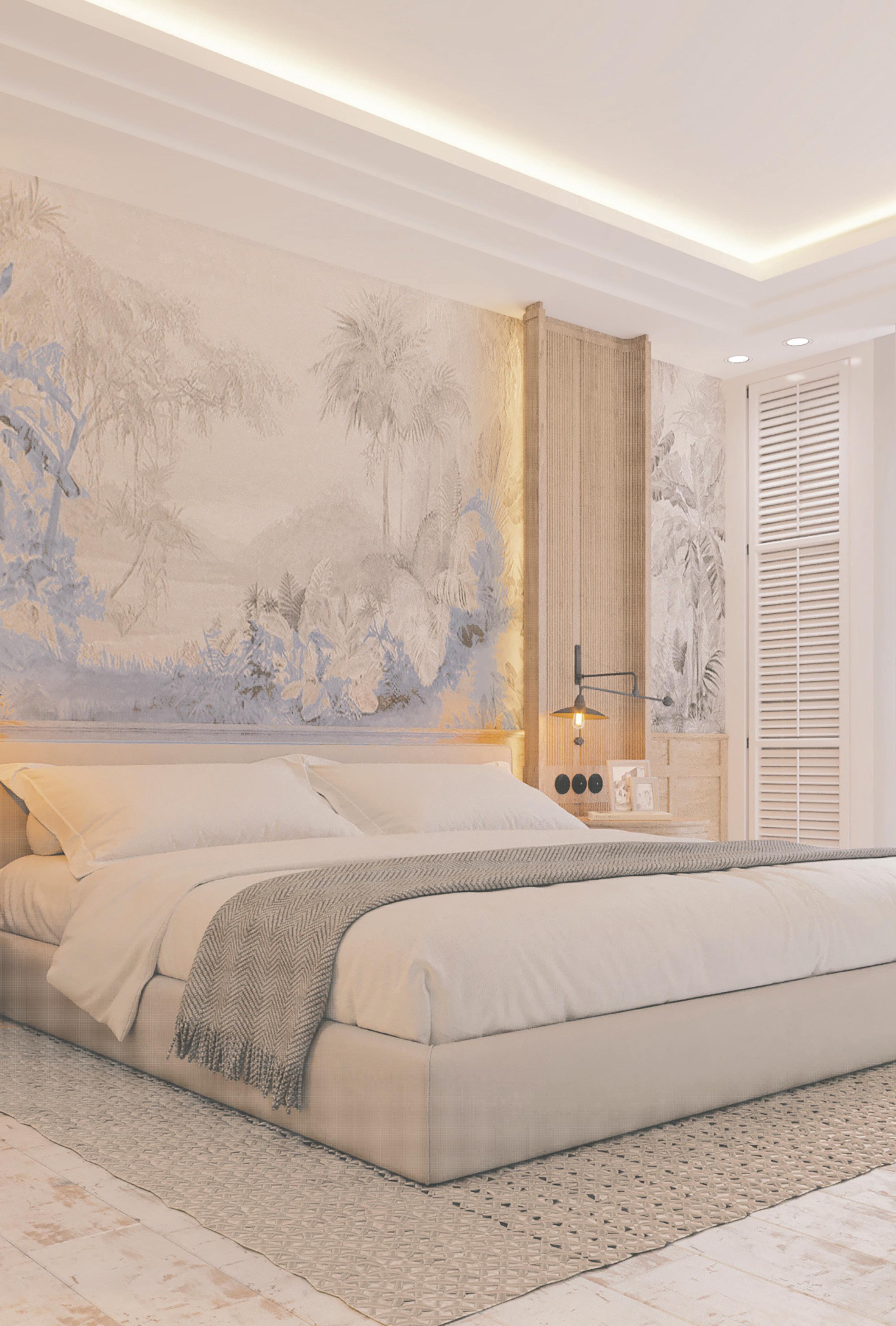 Førstesalen rummer foruden mastersuiten yderligere tre værelser, alle med en god størrelse og et ensartet udtryk med lyse vægge og brede trægulve. To af værelserne ligger i gavlen og har udgang til en stor altan, hvorfra man kan se ud over landskabet og følge lyset, når det bevæger sig hen over markerne i løbet af dagen. De øvrige værelser vender mod haven og får et blødt, grønt lys ind gennem vinduerne, der indrammer naturen som et levende bagtæppe.
