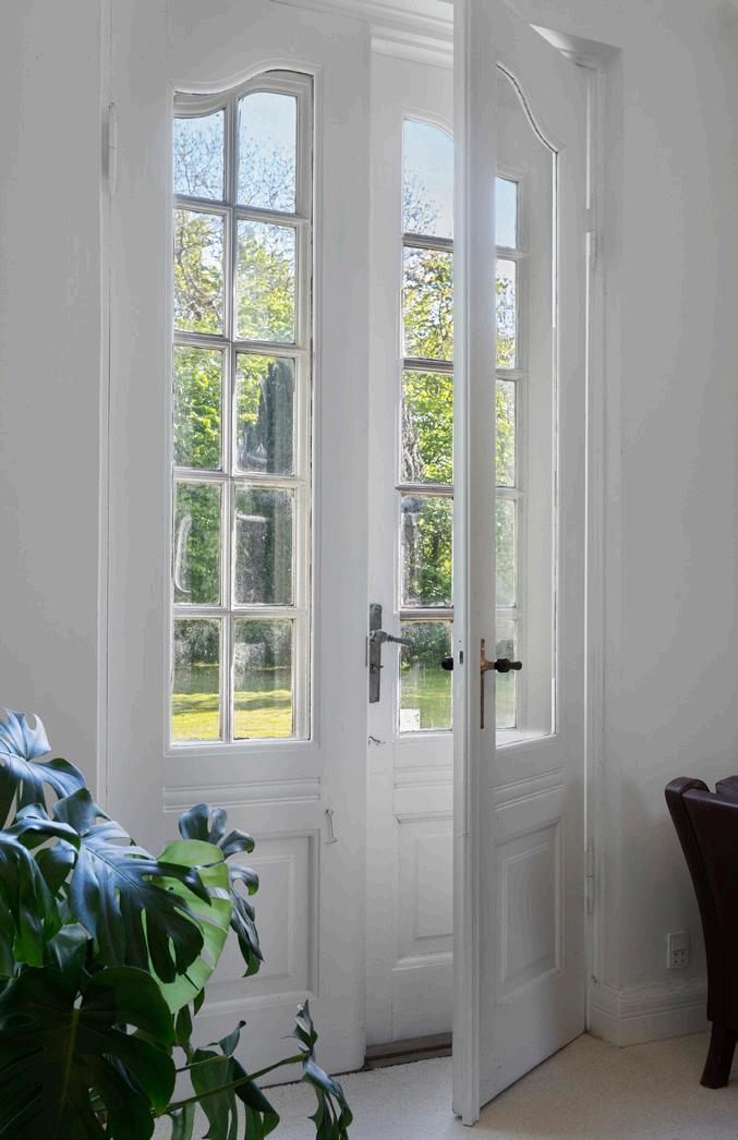 De smukt sammenkoblede stuer i Storgaard udgør husets hjerte og tilbyder et rum for både afslapning og samvær. De høje lofter, de store vinduespartier og de klassiske detaljer skaber en følelse af både tidløs elegance og rummelighed. Fra stuerne har du direkte adgang til haven, hvor den grønne oase udenfor trækker naturen ind i boligen og forstærker den følelse af lys og luft.