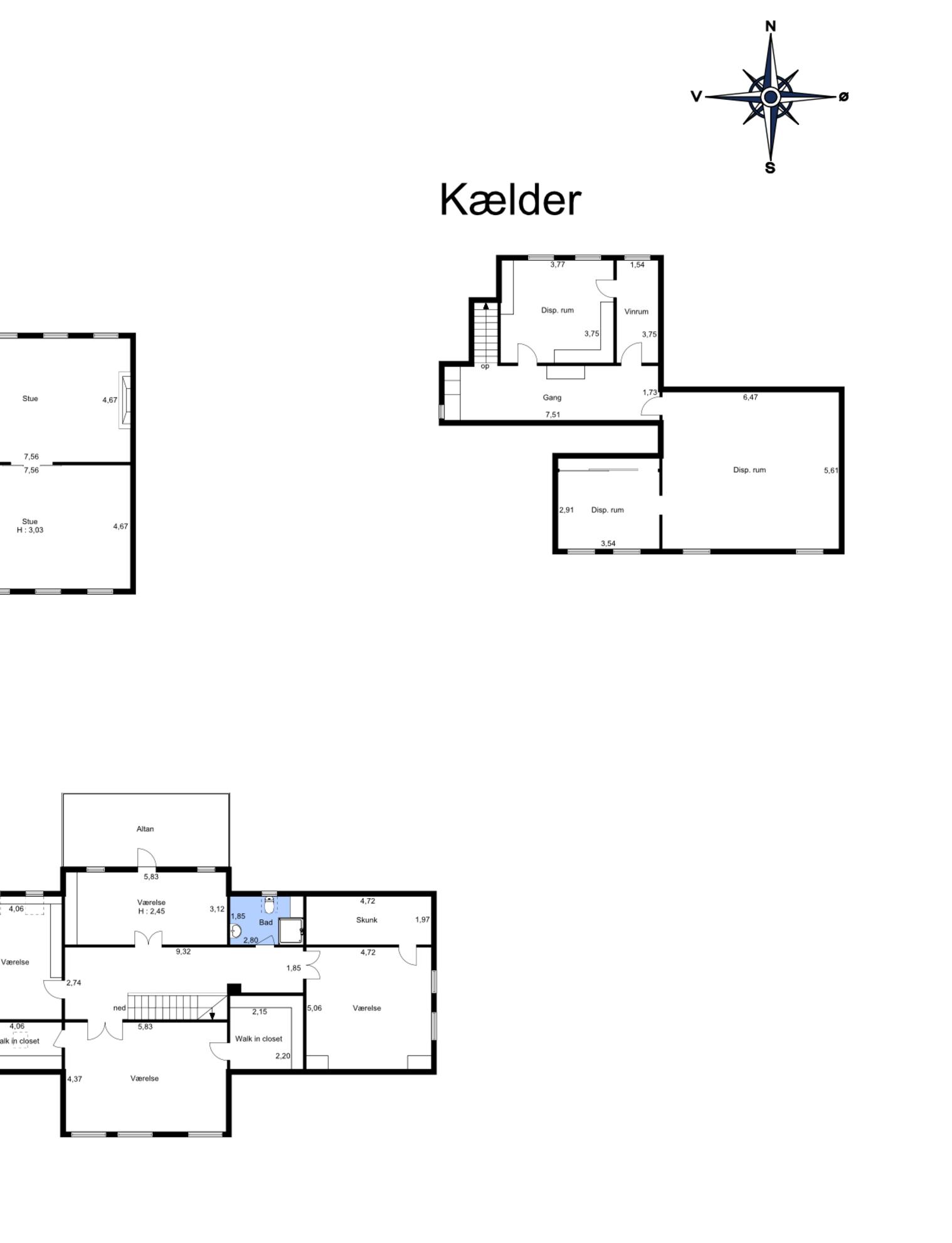 Villaens hovedhus rummer desuden en højloftet og tør kælder med både stort vaskerum, skabsrum og flere disponible rum, der giver god plads til både opbevaring og hobbyaktiviteter.