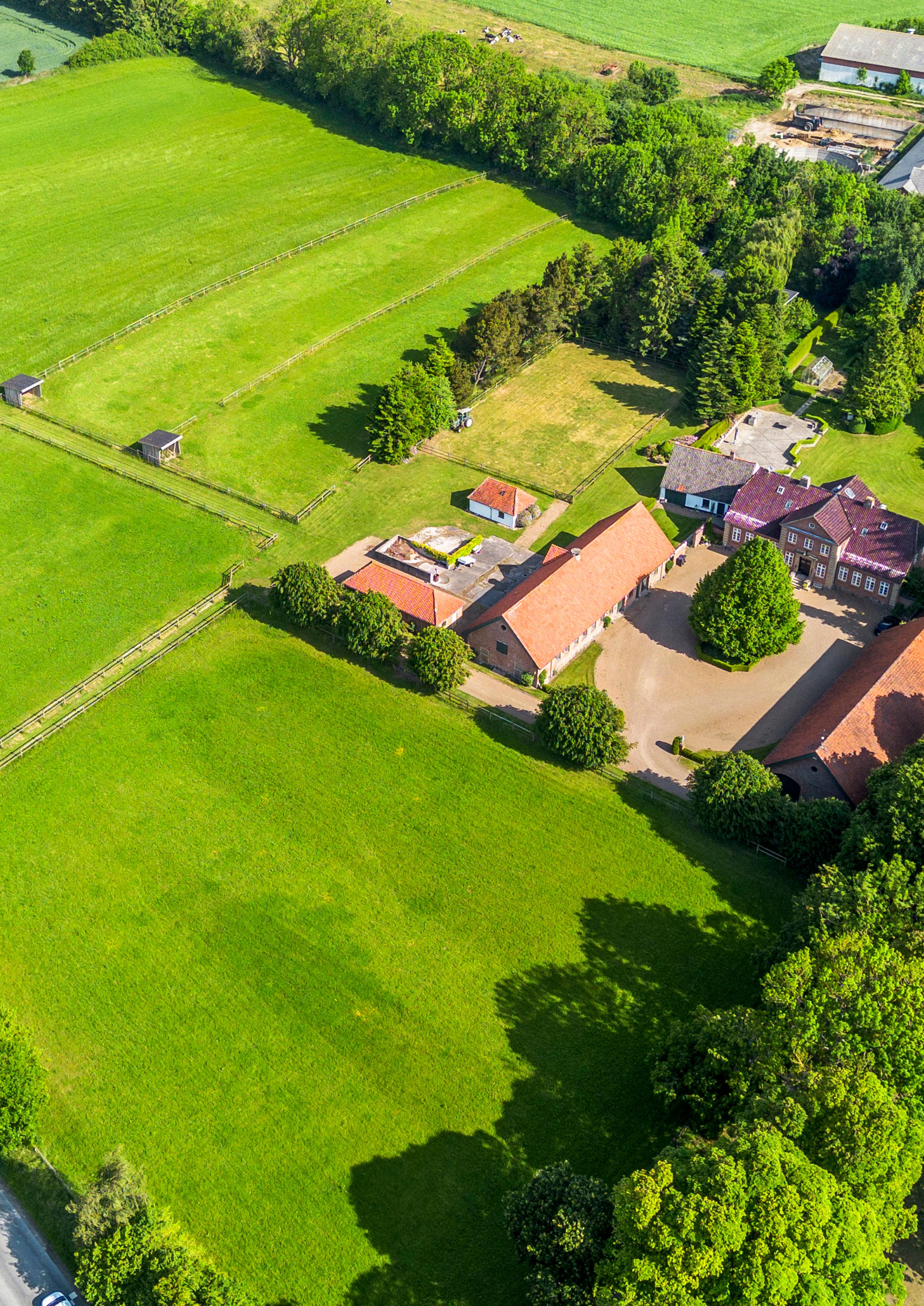Hele herligheden omkranses desuden af flere hestefolde, der naturligt indgår som en del af ejendommens samlede udtryk og funktion. Foldene er udstyret med træhegn, læskure, el og vandkopper, og suppleres af en mindre ridebane, der tilsammen skaber optimale forhold for hestehold.