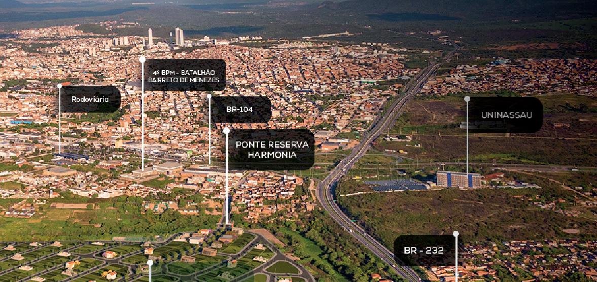 Uma localização privilegiada e a ponte Reserva Harmonia facilitam o acesso aos principais pontos de Caruaru, através da BR-104 e BR-232, como escolas, hospitais, shoppings e tudo que você precisa para viver bem.