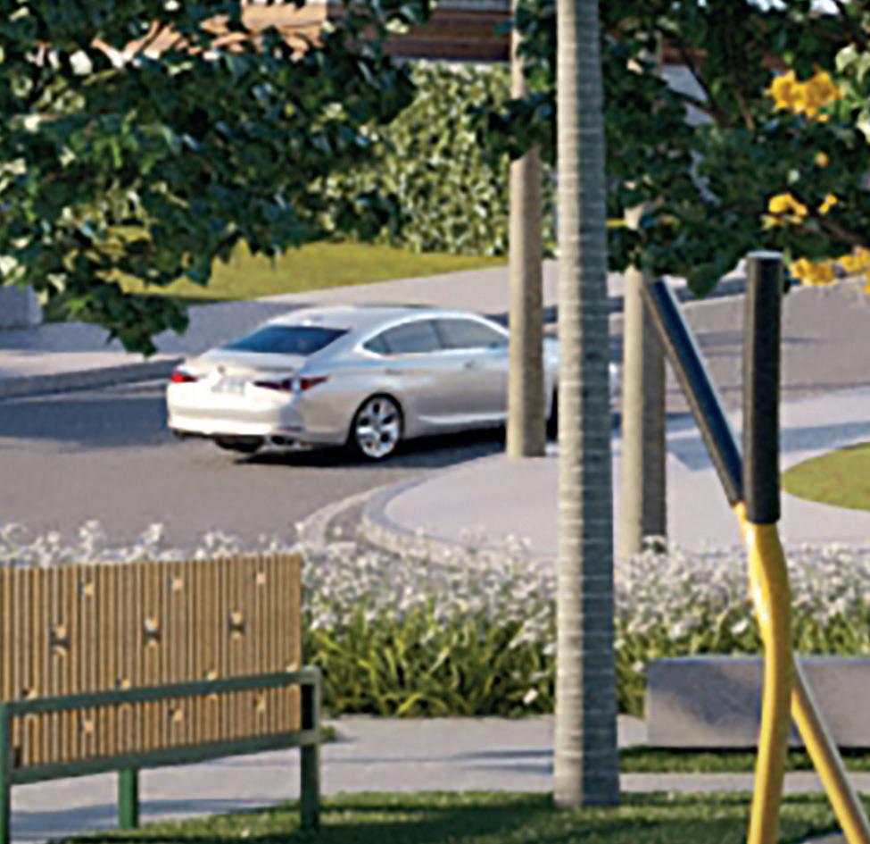 Um pórtico de entrada dá ao Reserva Harmonia o charme e a exclusividade de entrada no bairro planejado, com acesso a uma avenida comercial toda estilizada.