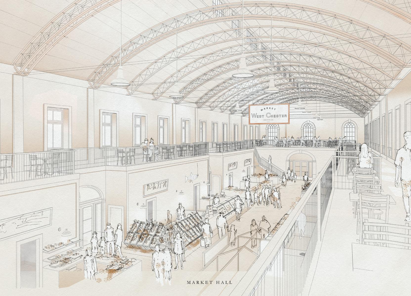 Located in the seat of Chester County, the West Chester public market and regional rail station serve as anchors in an urban vision to revitalize former industrial parcels near West Chester’s historic center. To accomplish this, the proposal includes the following efforts: 1) to foster a new marketplace for exchange between farm producers, residents, and visitors; 2) to reinstate modernized SEPTA rail service on disused portions of existing rail to Philadelphia; and 3) to form the urban and green spaces needed to expand public amenities in historically underserved areas of the West Chester borough.