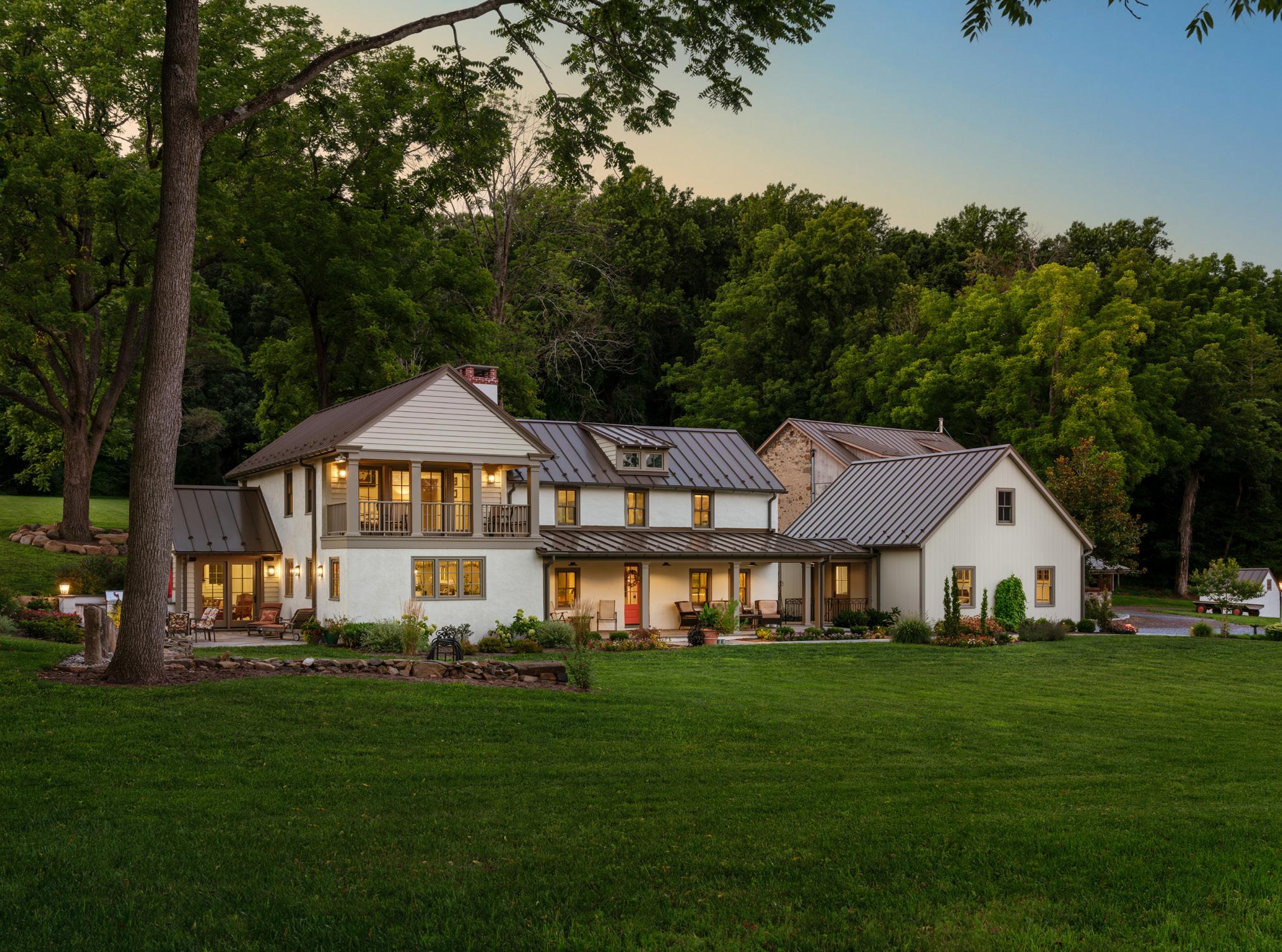 The architectural details throughout the interior are reminiscent of Colonial Williamsburg homes with period millwork and traditional color palette. The exterior of the home is clad in salvaged Pennsylvania fieldstone, with reclaimed granite headers, giving life to the story of Revolutionary-era home. The layout of the main level was created to maximize the views of the exceptional posterior landscape on which it sits with nonessential rooms toward the front and main living quarters located in the rear of the home. The gracious layout, traditional detailing and natural warmth of the design has given this new home a feeling of province and has established a space even George Washington would feel at home in.