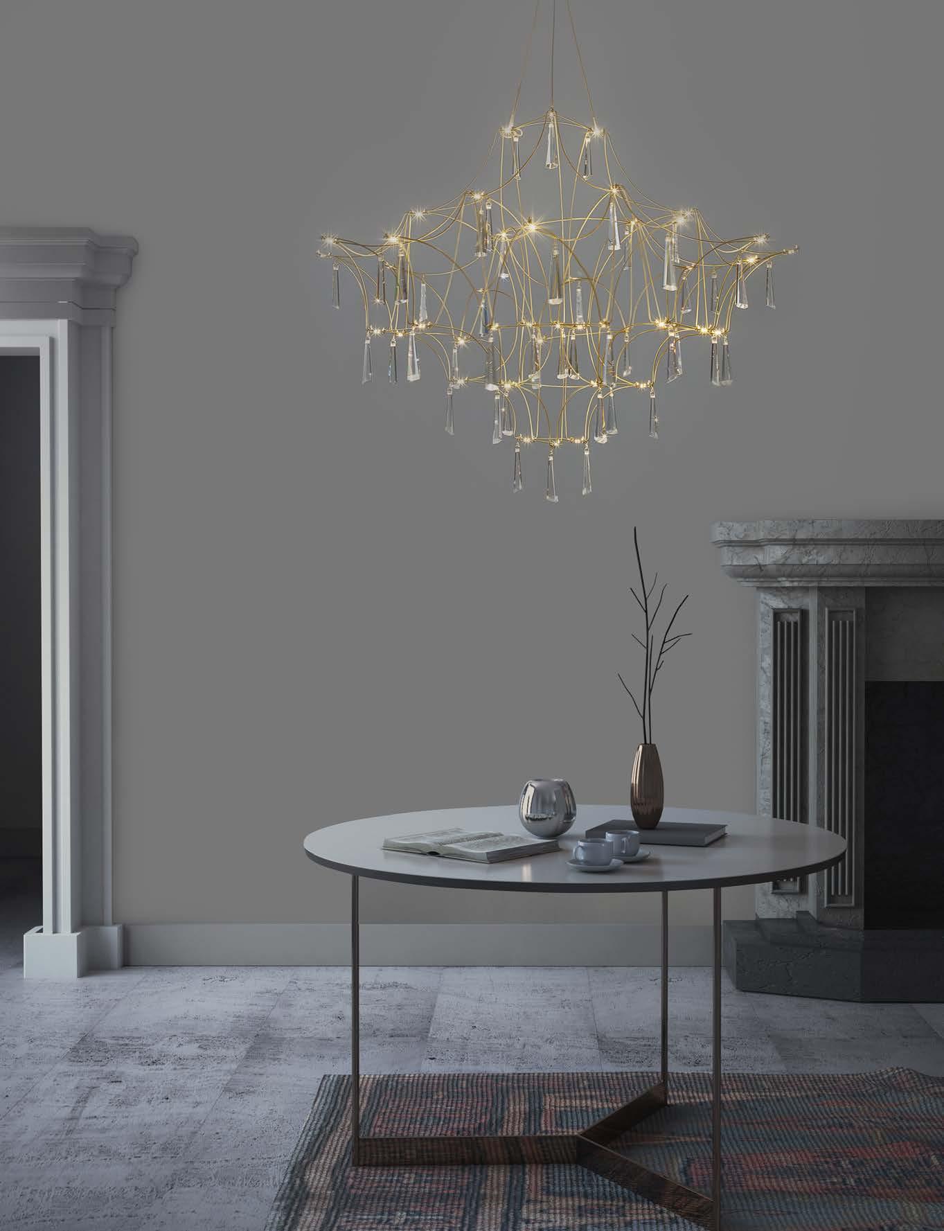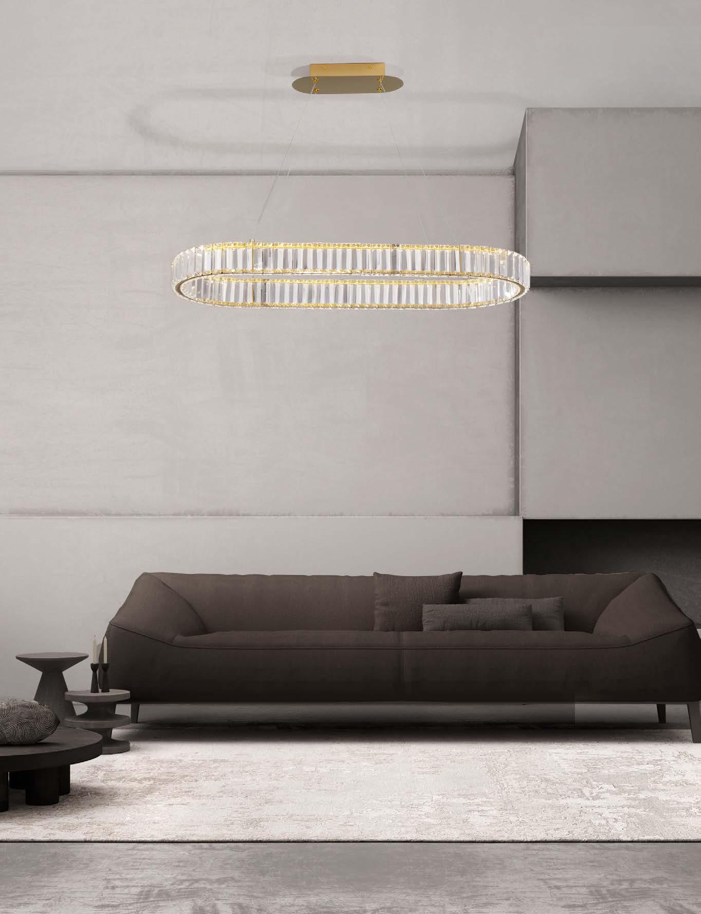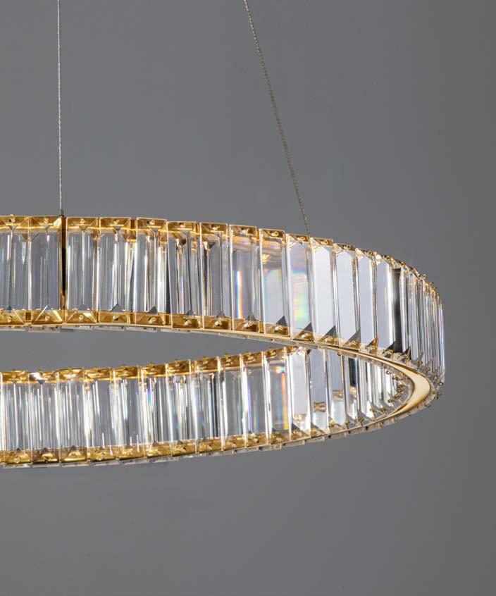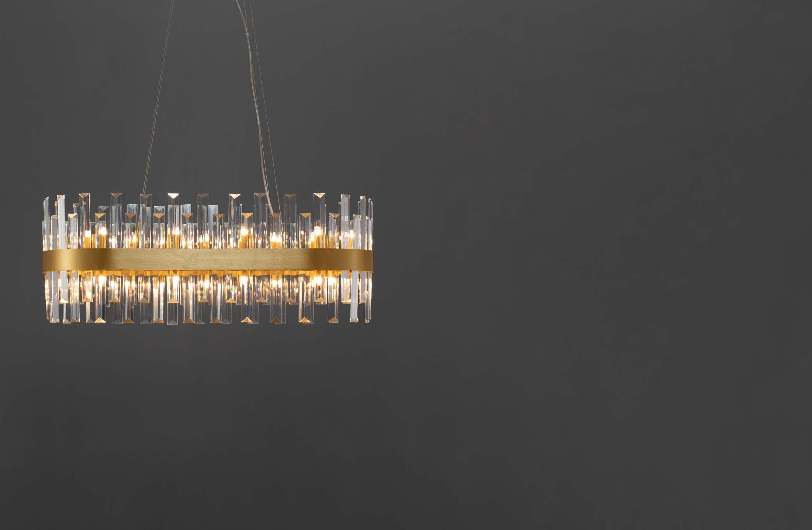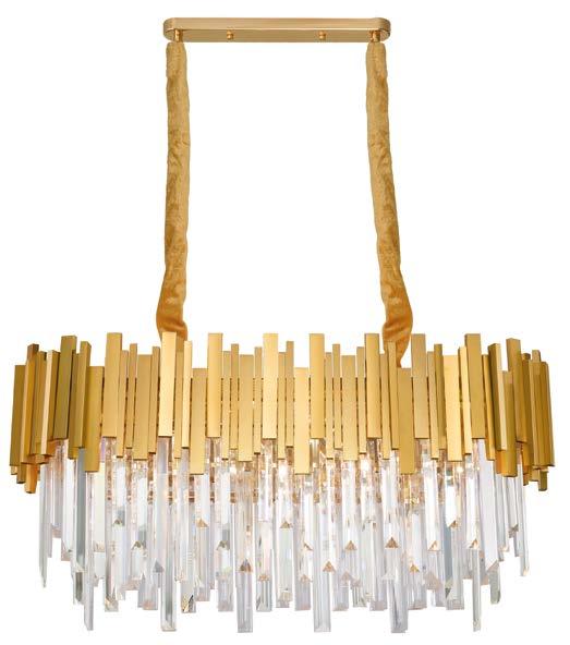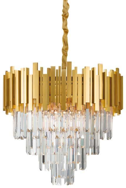 Clear Crystal & Gold Metal LED 18 Watt 230 Volt 2059Lm 3000K IP20 D: 80 H: 160 cm 160 80 GORO ˙ 9116820 Adjustable Height