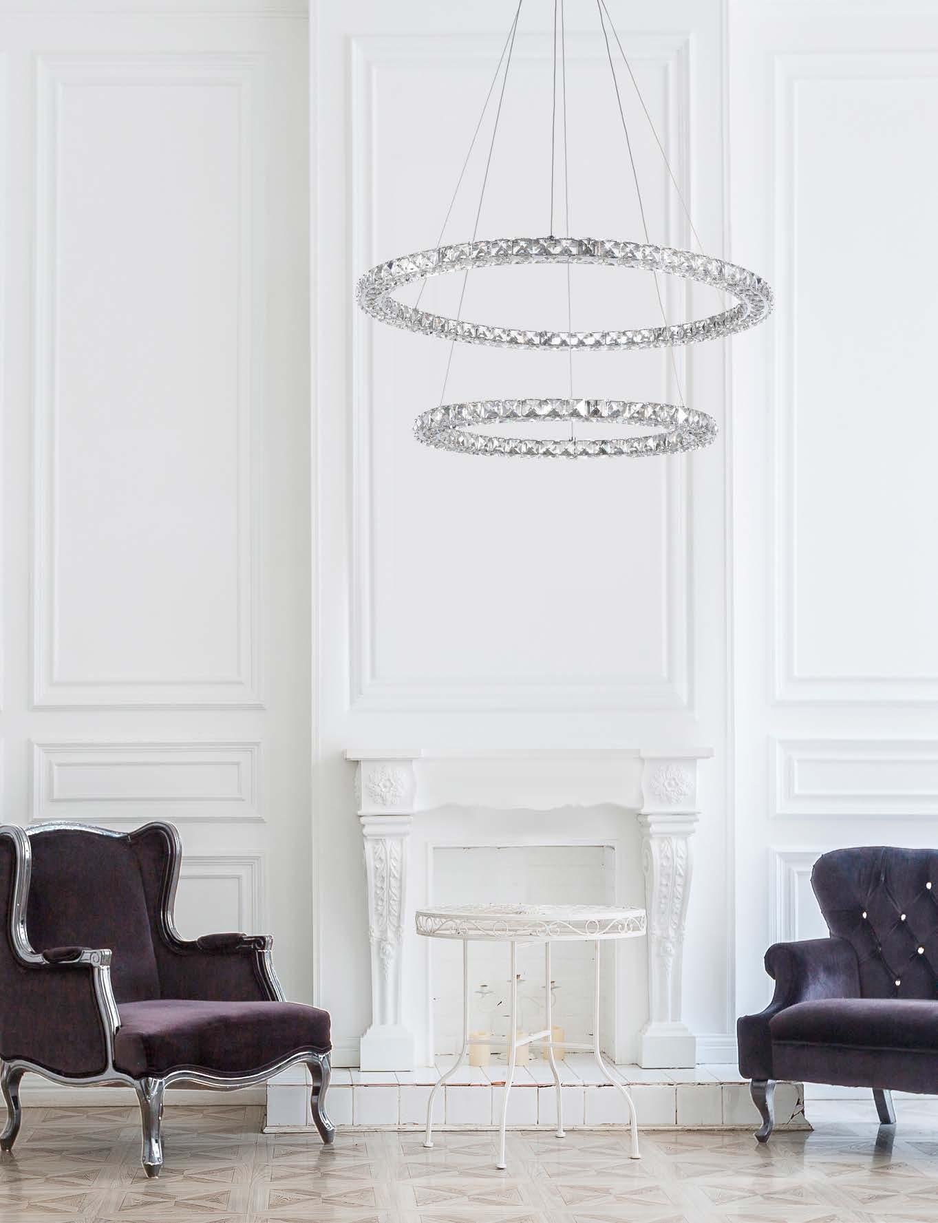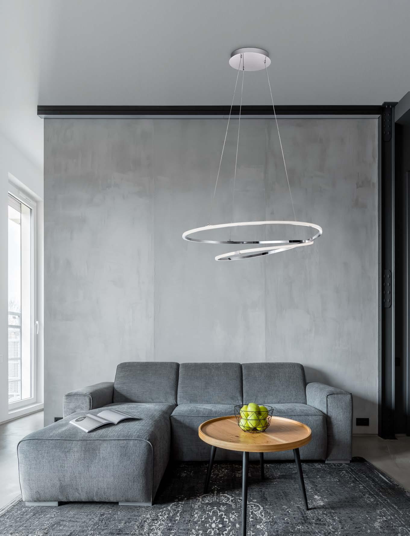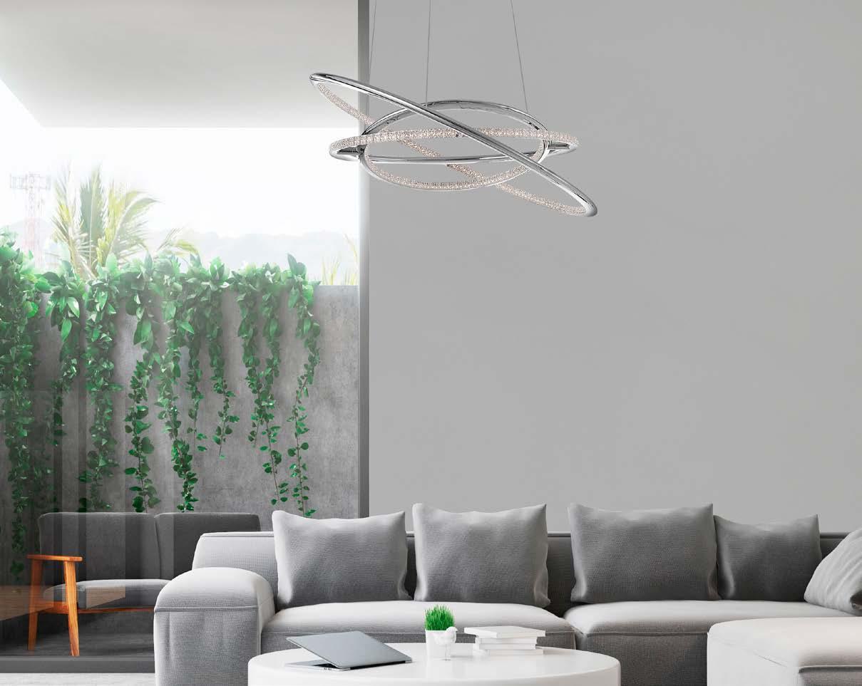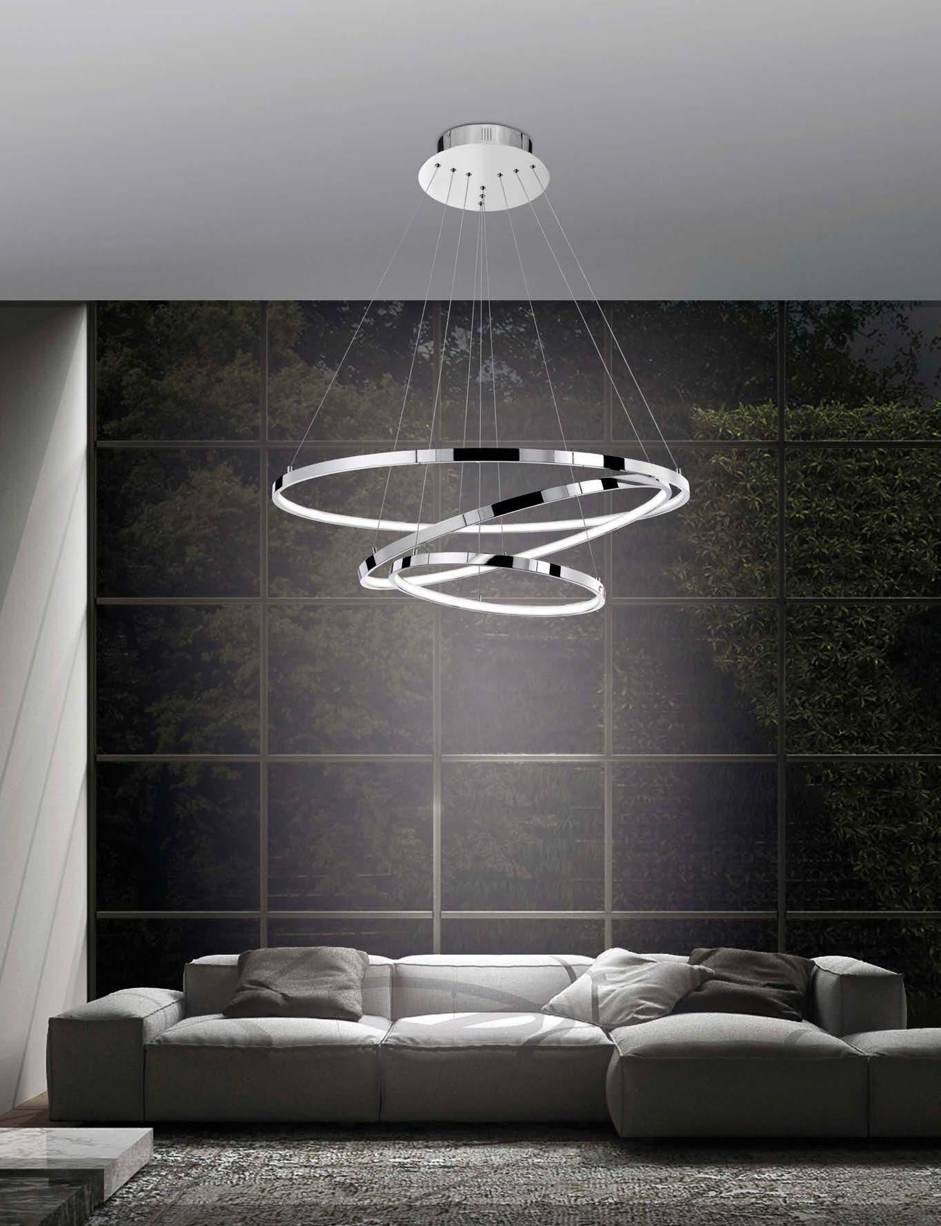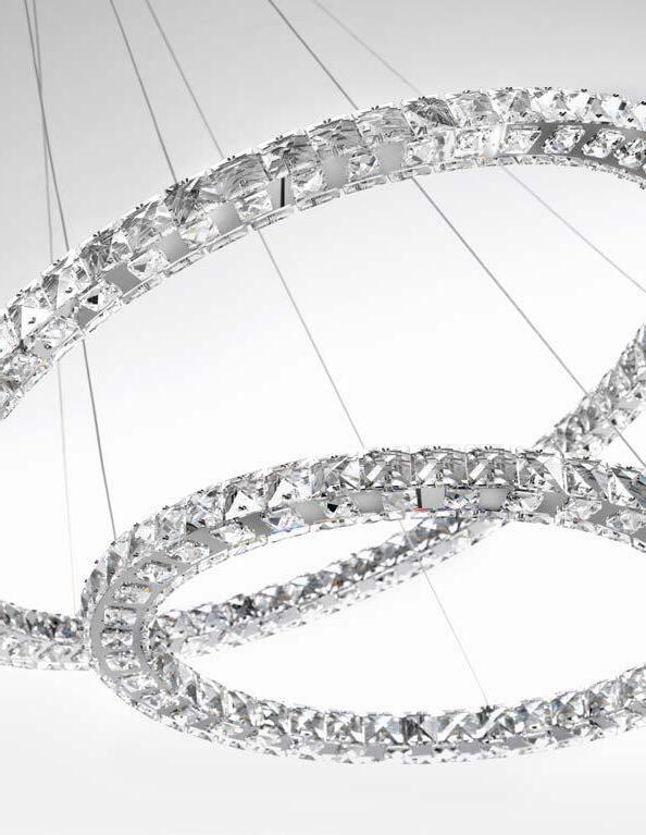 BRILLANTE ˙ 9186912 Chrome Aluminium & Acrylic LED 134W 230 Volt 8530Lm 3200K IP20 Class D: 147 H: 300 cm Triac Dimmable 300 147 32 5.2 10 30 Adjustable Height