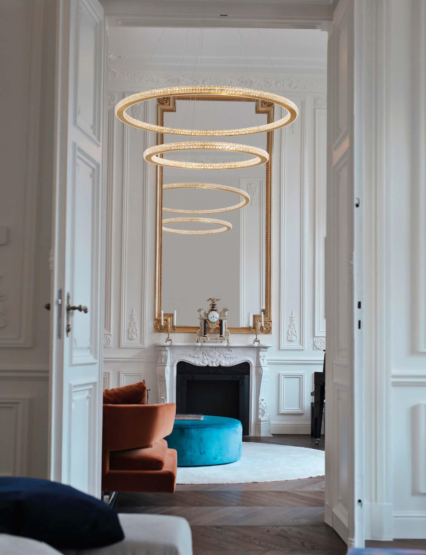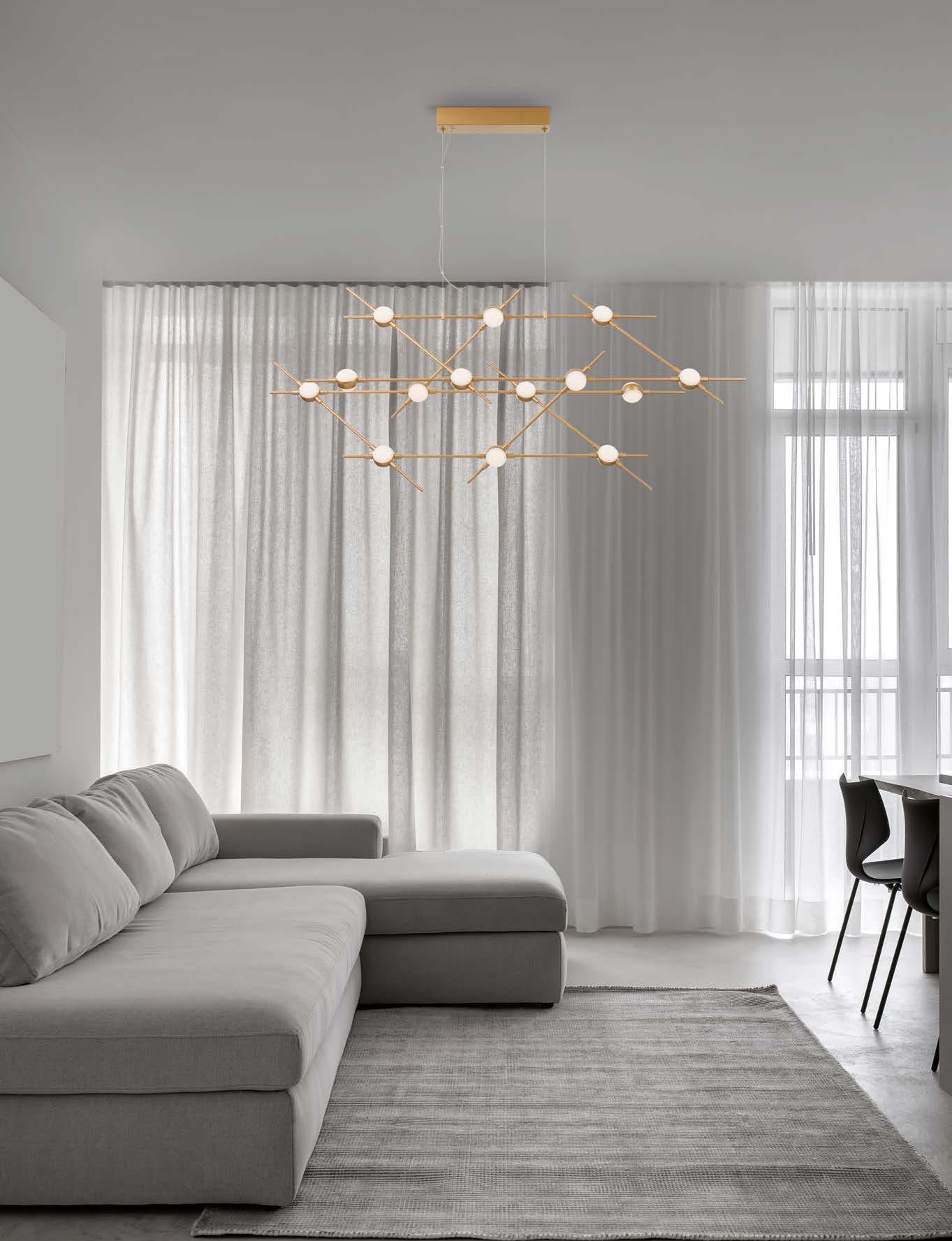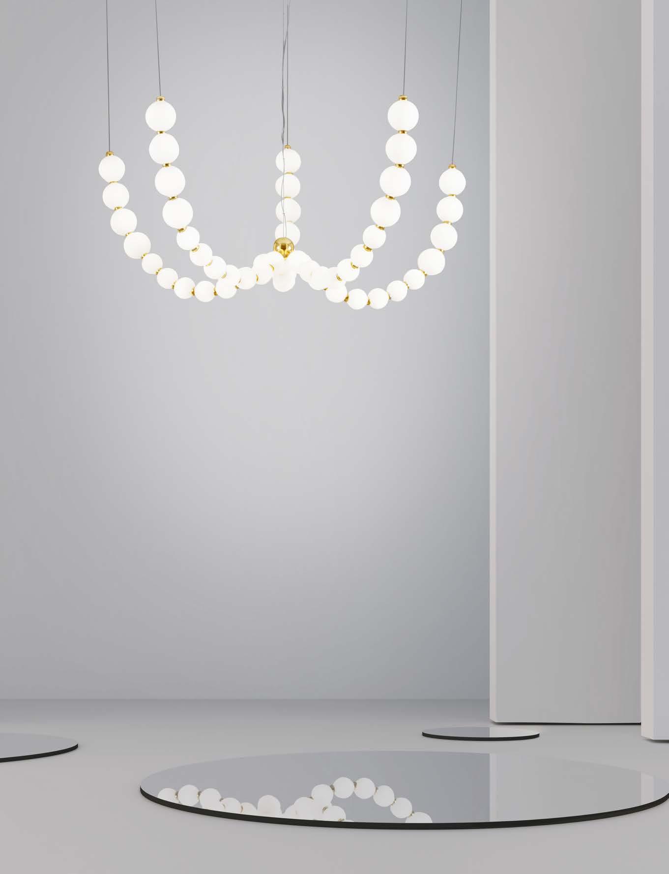 Adjustable Height PERLA ˙ 9186915 Chrome Metal & Opal Glass LED 207 Watt 230 Volt 13065Lm 3000K IP20 D 1: 79 D 2 10 H: 400 cm Triac Dimmable Adjustable Height PERLA ˙ 9695207 Gold Metal & Opal Glass LED 207 Watt 230 Volt 13065Lm 3000K IP20 D 1 79 D 2: 10 H: 400 cm Triac Dimmable 400 79 37 5.5 10 400 79 37 5.5 10