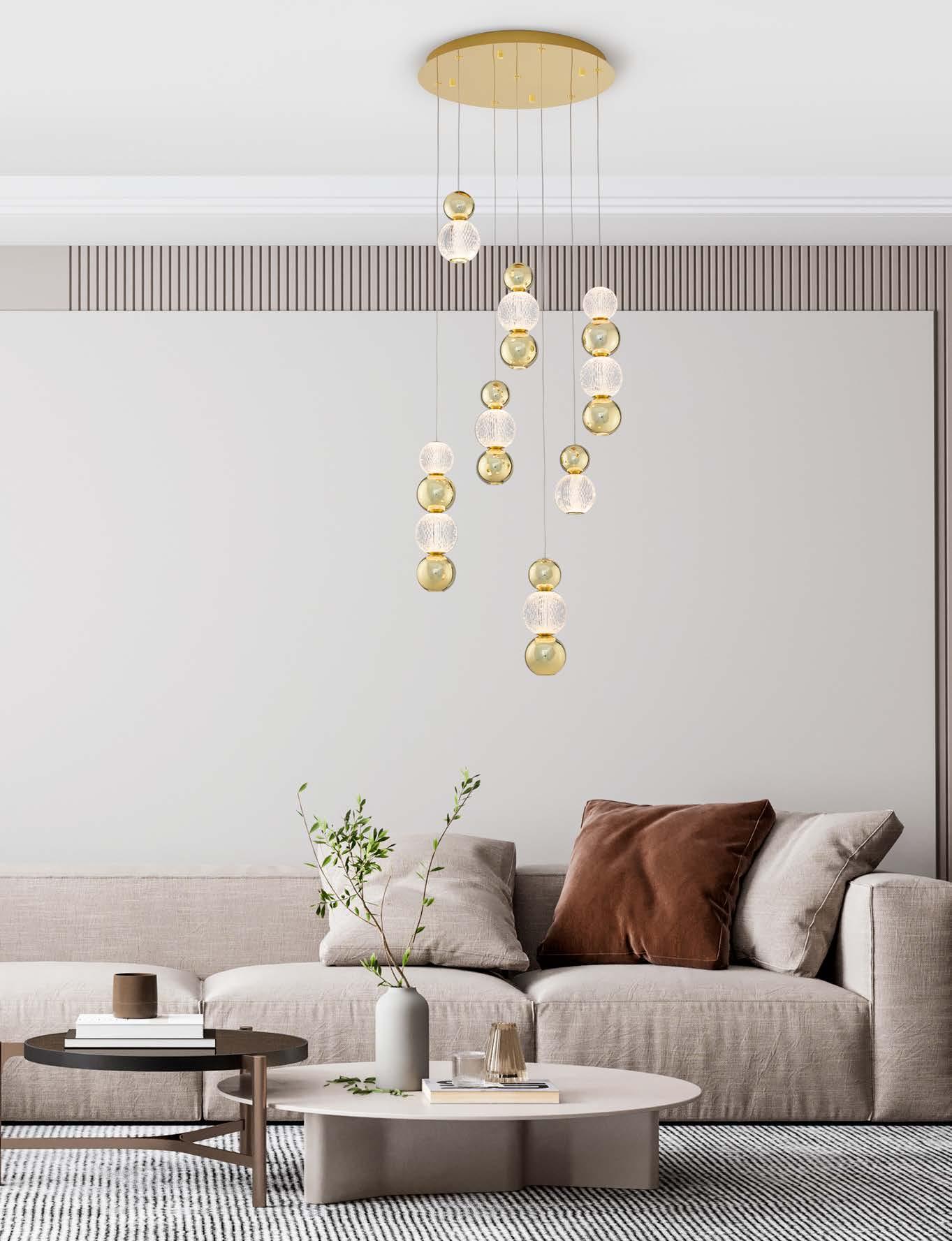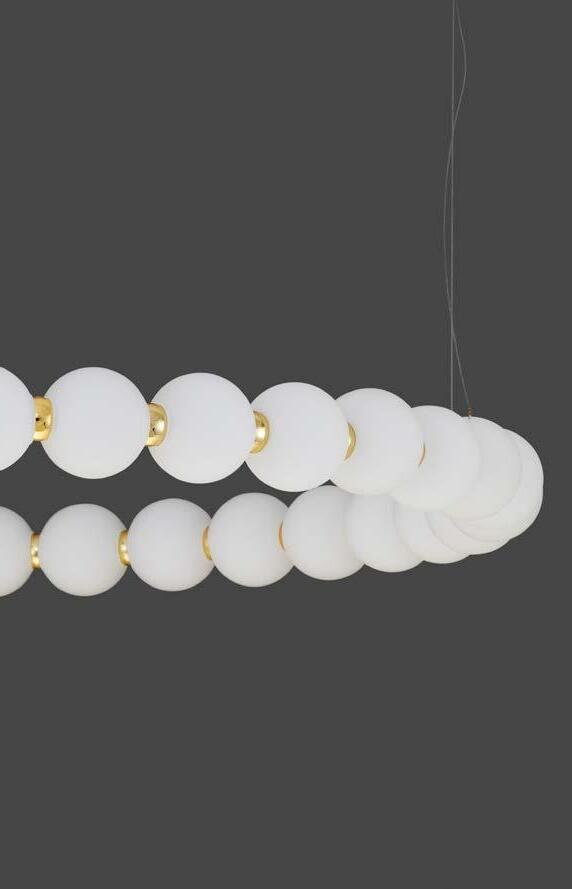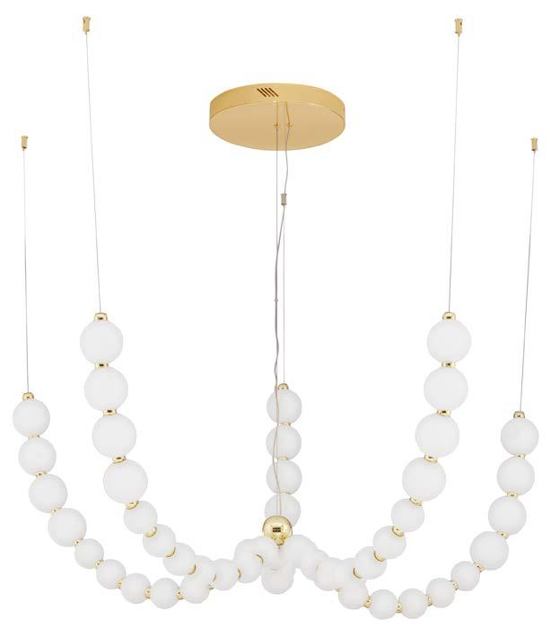 PERLA ˙ 9695203 Gold Metal & Opal Glass LED 125 Watt 230 Volt 11377Lm 3000K IP20 Included Remote Control D: 118 H: 150 cm Triac Dimmable 150 118 8 4 28.5 Adjustable Height 12 31 PERLA ˙ 9695240 Gold Metal & Opal Glass LED 10 Watt 230 Volt 868Lm 3000K IP20 D: 12 H: 31 cm 9695203 Included Remote control
