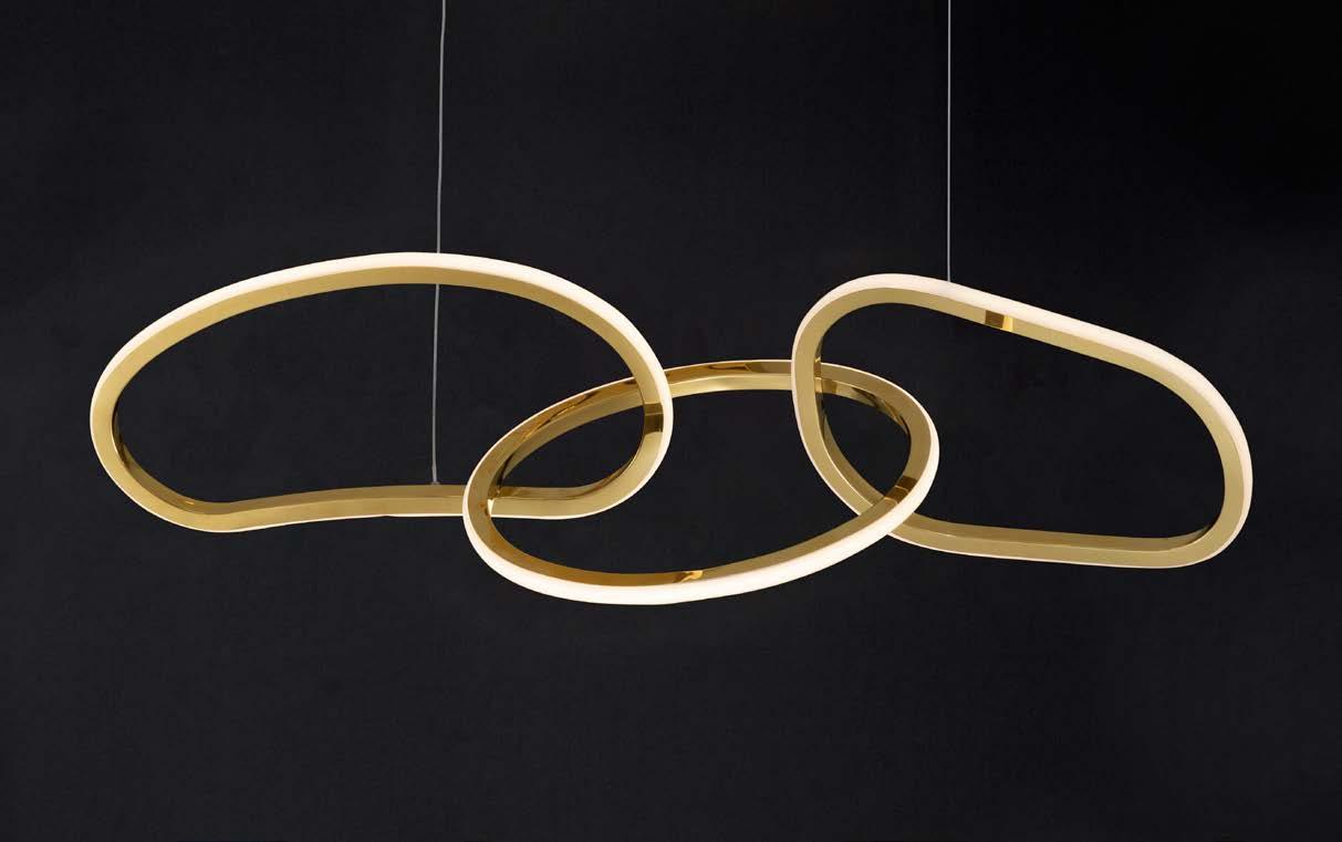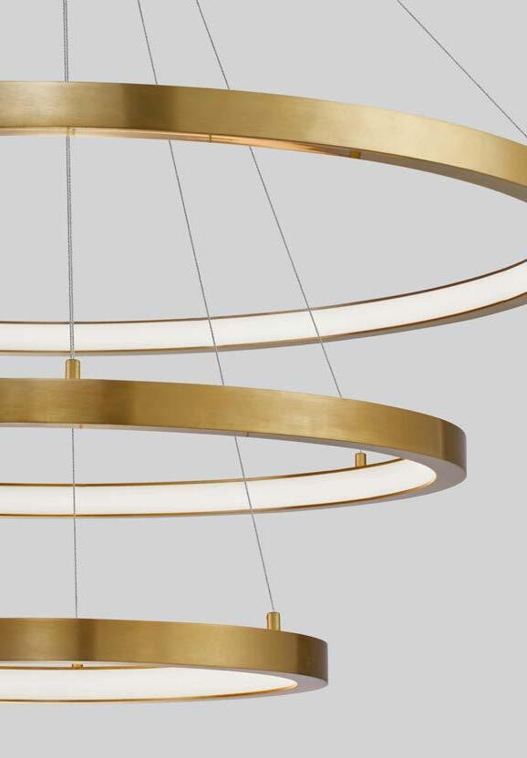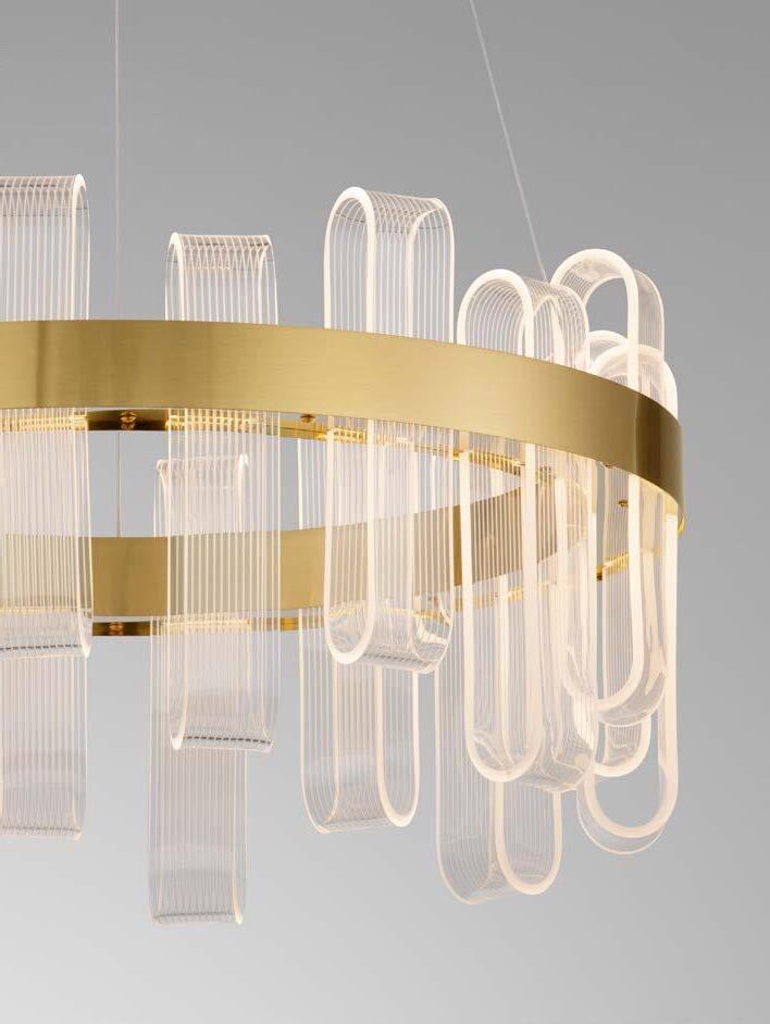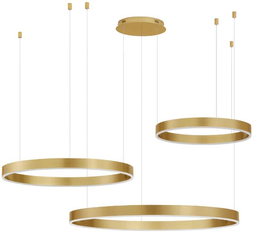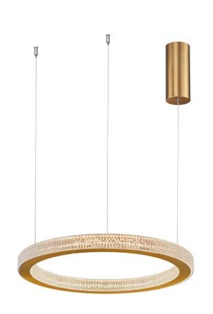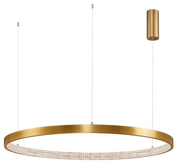 BRILLANTE ˙ 9695201 Gold Aluminium & Acrylic LED 134W 230 Volt 8530Lm 3200K IP20 Class D: 147 H: 300 cm Triac Dimmable 300 147 32 5.2 10 30 Adjustable Height