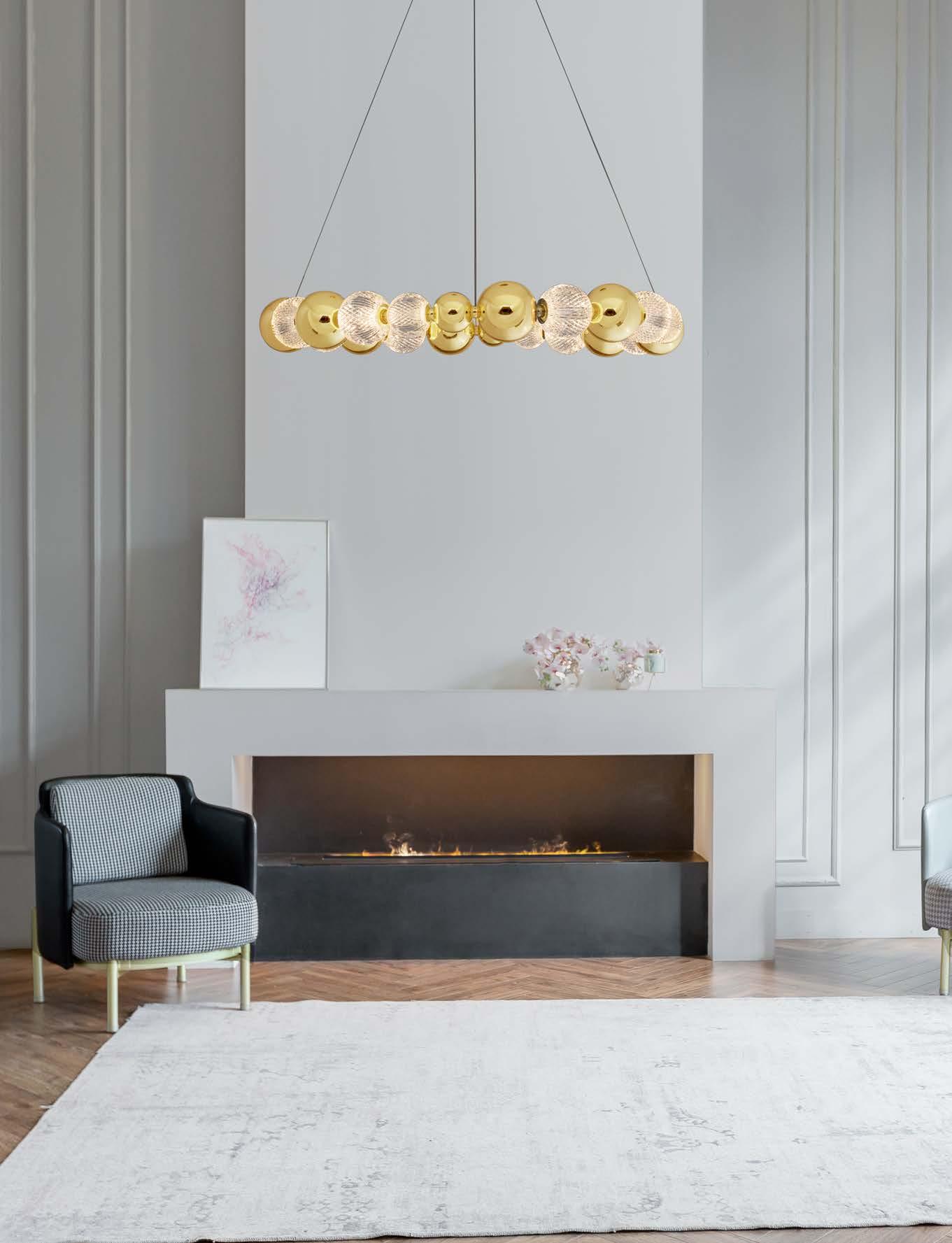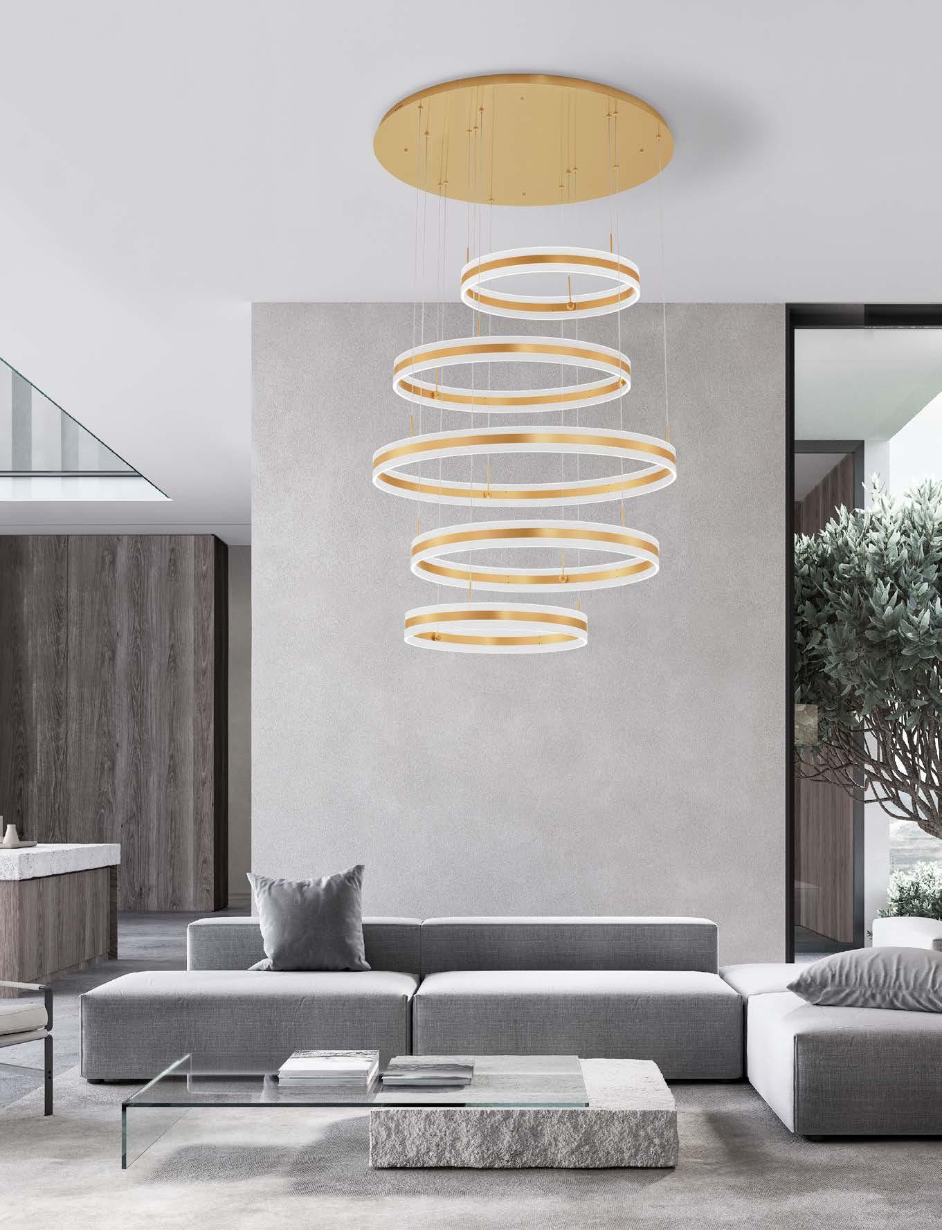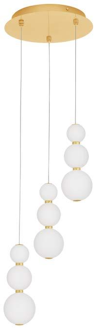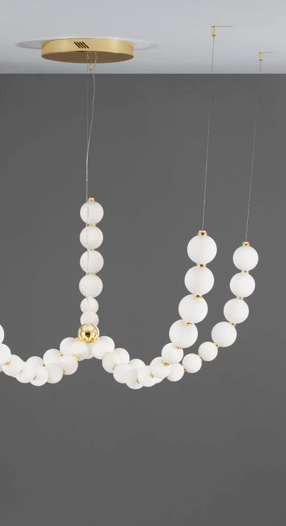 PERLA ˙ 9695231 Gold Metal & Opal Glass LED 72 Watt 230 Volt 6492Lm 3000K IP20 Included Remote Control D: 80 H: 200 cm Triac Dimmable 80 200 6 PERLA ˙ 9695230 Gold Metal & Opal Glass LED 56 Watt 230 Volt 4732Lm 3000K IP20 D: 62 H: 200 cm Triac Dimmable 8 23.5 62 6 8 23 200 PERLA ˙ 9695232 Gold Metal & Opal Glass LED 96 Watt 230 Volt 8076Lm 3000K IP20 Included Remote Control D: 104 H: 200 cm Triac Dimmable 104 200 6 Adjustable Height Adjustable Height Adjustable Height 9695231-9695232 Included Remote control 10 28.5